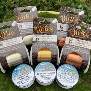 Half-hard, copper-core beading wire in a variety of gauges and colors. This popular wire is treated to resist tarnishing.