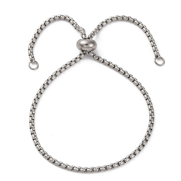 Stainless steel box chain Bolo bracelet with stopper bead and 2 jump rings.
