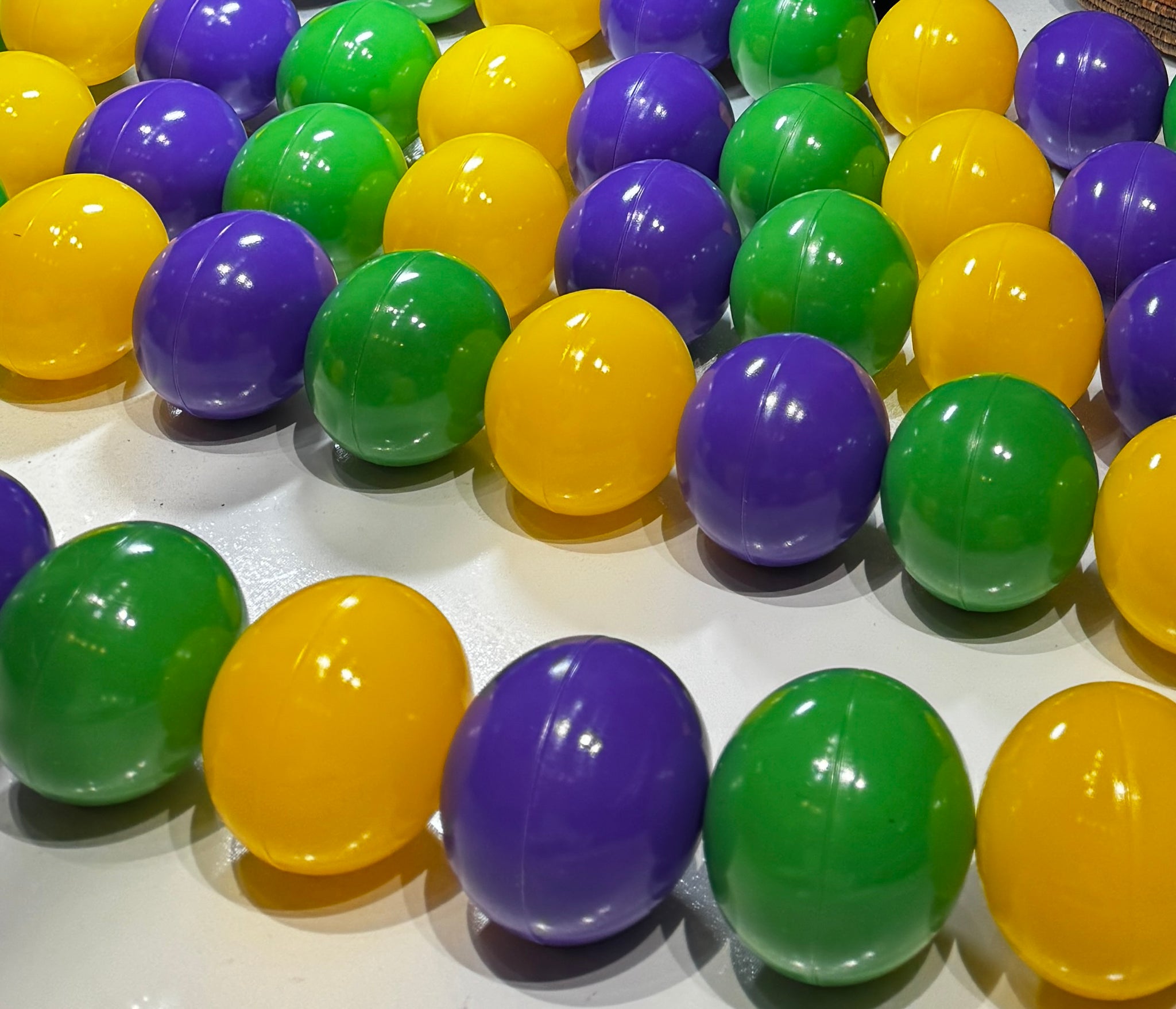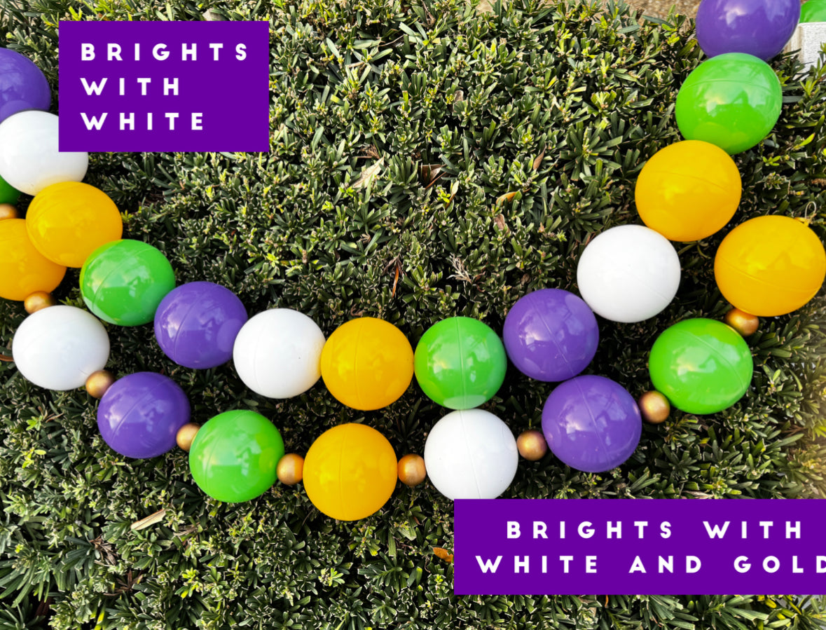 These beauties are ready to hang. If you’re interested in DIY of these fun bead garlands, see our listing here for more info: https://www.beadshopneworleans.com/products/diy-mardi-gras-garland-kit