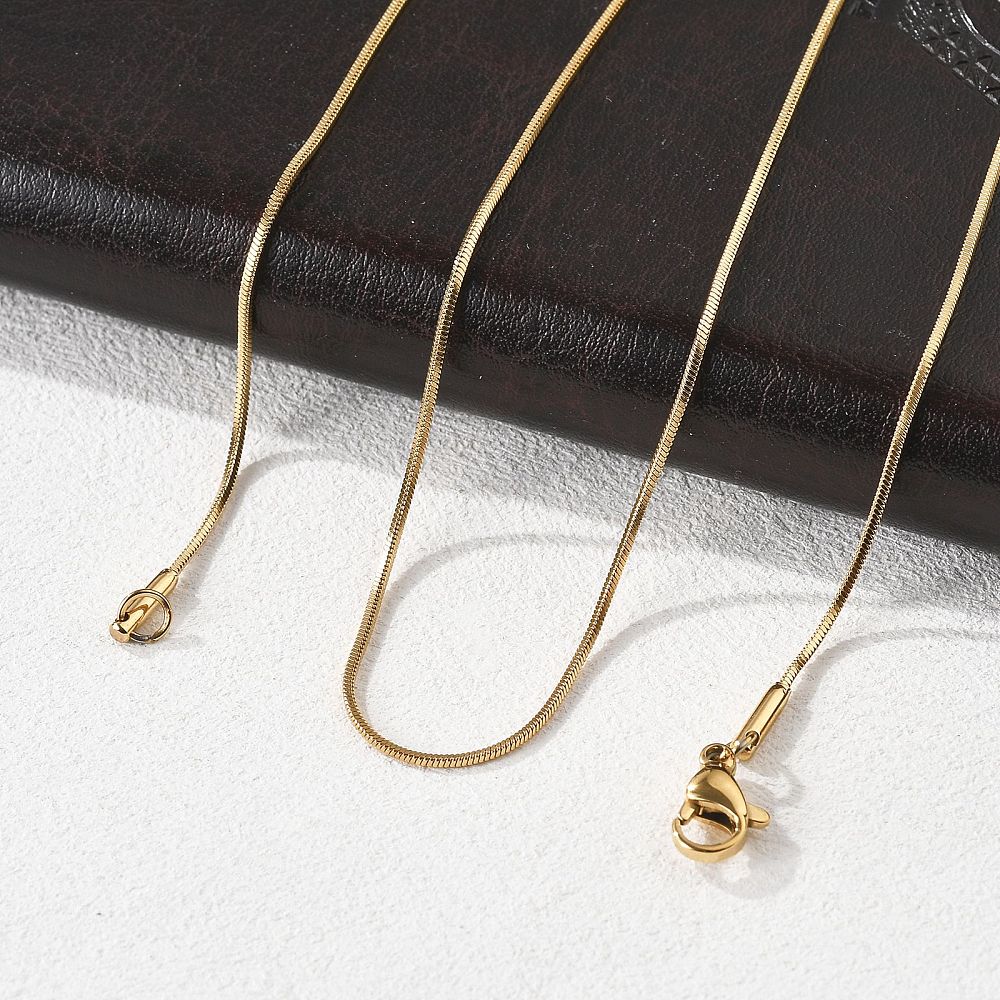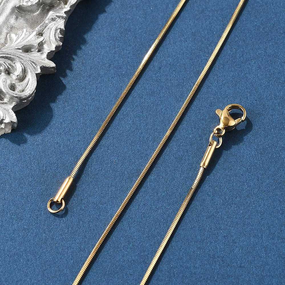 Plated stainless steel square snake chain necklace with lobster claw clasp. This chain measures about 18" in length and creates a seamless look with a pendant of your choice.