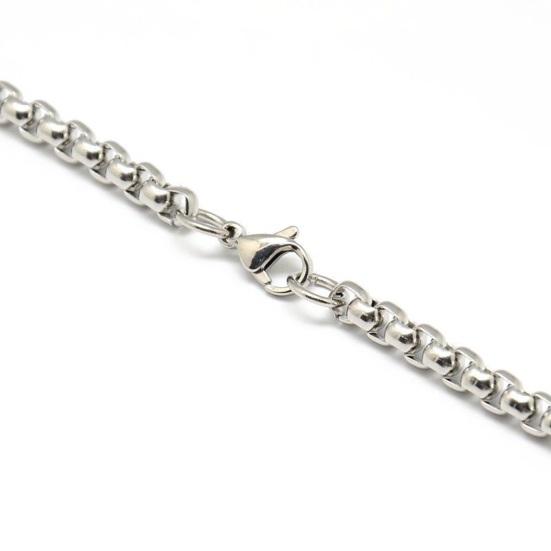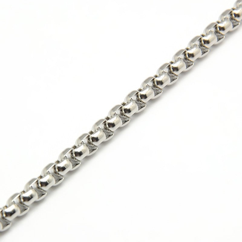 Plated stainless steel, thick and sturdy Venetian box chain necklace with lobster claw clasp.