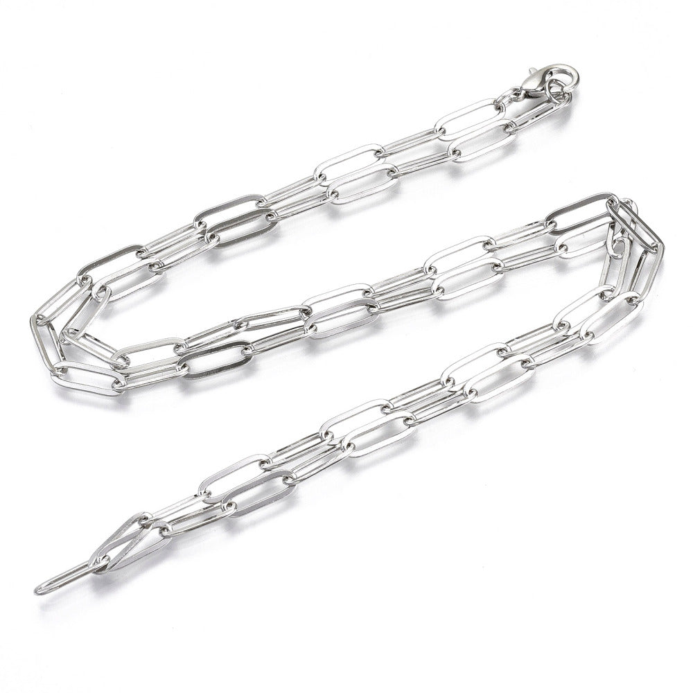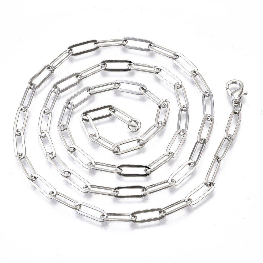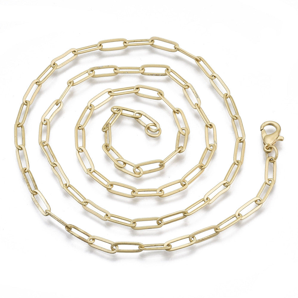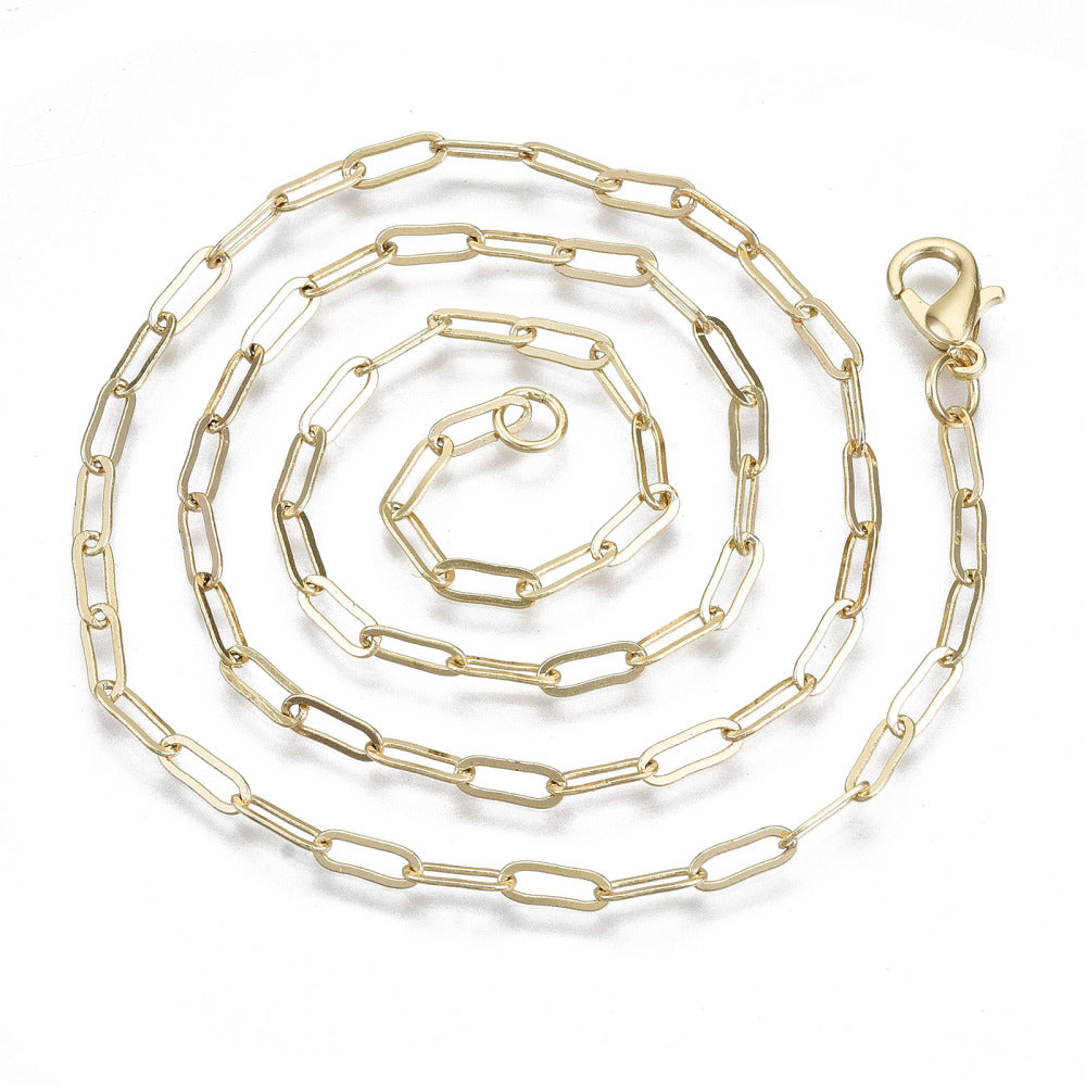 Gold plated brass paperclip chain necklace with lobster claw clasp. This necklace comes in an assortment of lengths, link sizes and colors, perfect for layering.