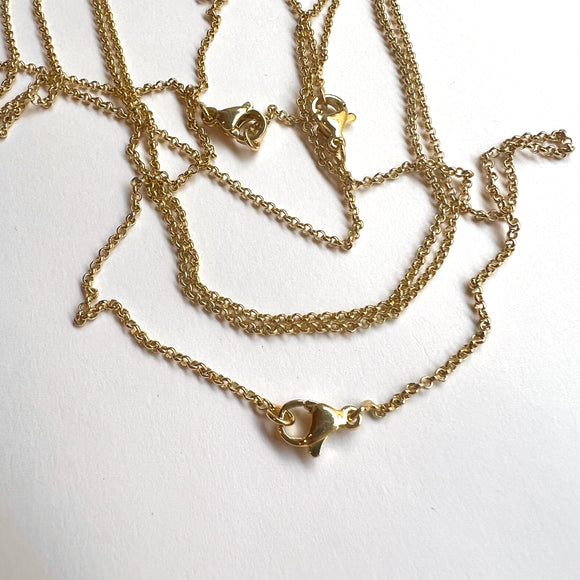 Assorted finished chains in sterling, 14k gold filled, plated brass and plated stainless steel.