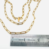 Gold plated stainless steel medium link paperclip chain necklace with lobster claw clasp. This necklace measures about 20" in length, but you can hook the clasp in any link, so it can be worn shorter, as well. We can also cut it down if you'd like a shorter one just make a note when checking out.