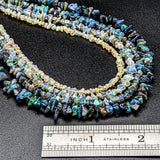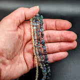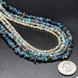 The 16" strand of Blue Grey Opal Chips contains approximately 12 beads per inch, ranging from 4mm-7mm.