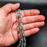 The 16" strand of Light Grey Opal Chips contains approximately 14 beads per inch, ranging from 3mm-8mm.