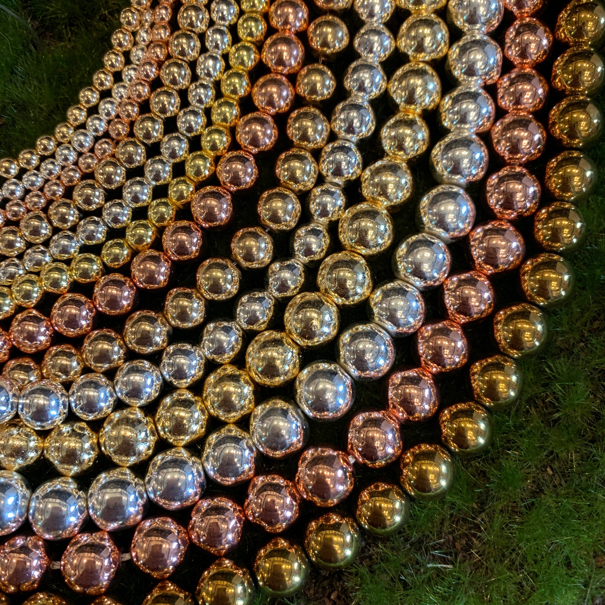These are our current top seller. Electroplated round beads in a variety of colors and sizes.