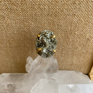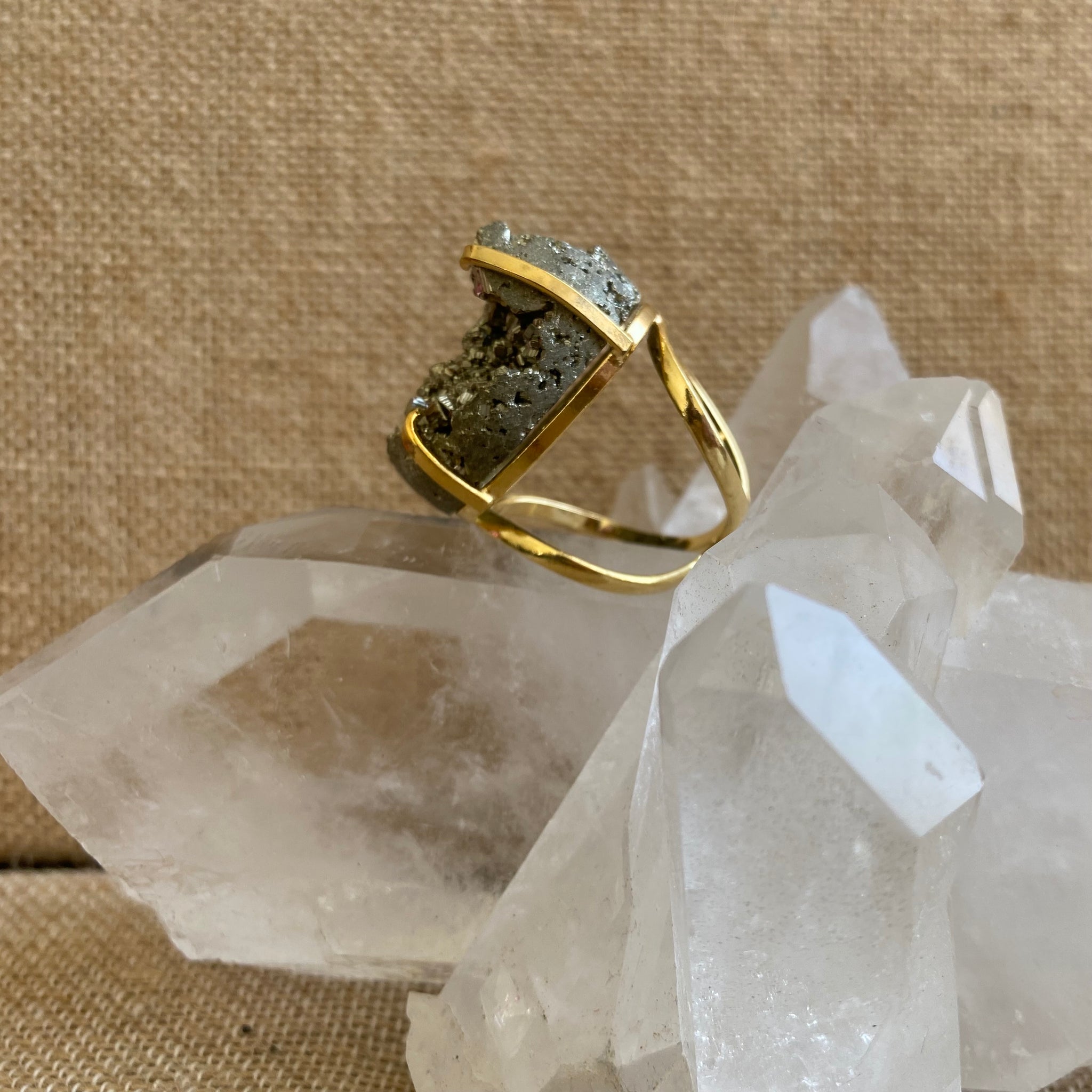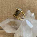 Pyrite druzy set in a custom, fully adjustable triple-plated gold ring base