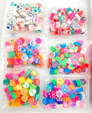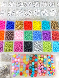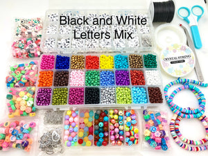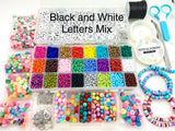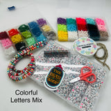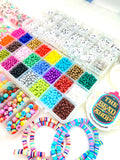 This epic kit will have you ready for all of Taylor Swift's performances! Your bracelets will stand out with this unique selection of alphabet beads, seed beads in 24 colors, metal charms, colorful round beads (in five styles), polymer clay discs, and assortment of polymer beads including flowers, fruit, animals, paws and hearts. Clasps, jump rings, scissors, tweezers, one spool of black waxed cord (makes approximately 20 bracelets or 10 necklaces) and two spools of clear elastic cord (makes approximately 40 bracelets) are also included!