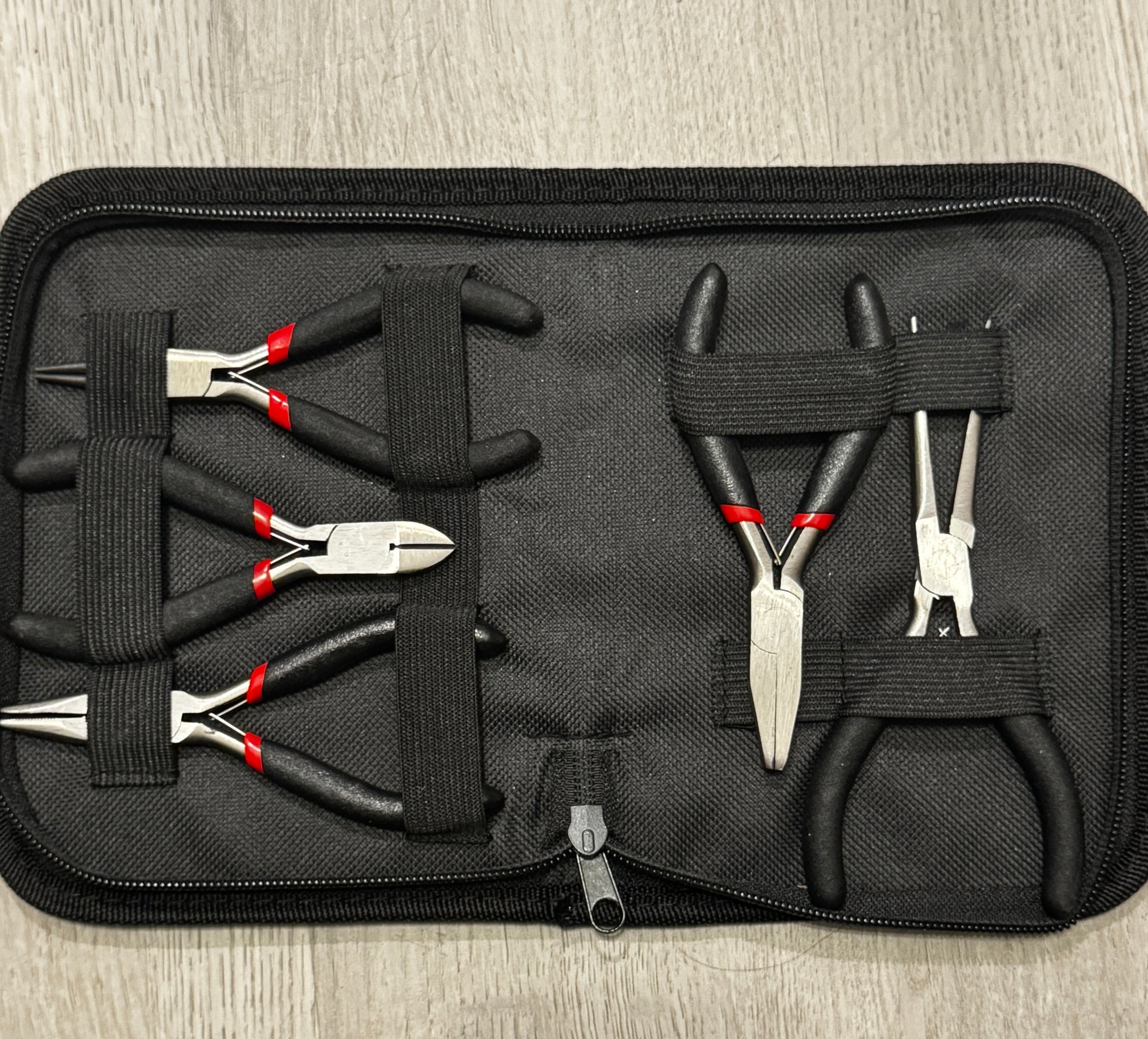 5 pc. Mid level Jewelry making tool kit in a black zipper pouch