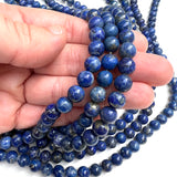 AAA quality 8mm natural lapis stone rounds on 16" strands