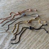 Add any of your favorite stones or connectors to the two open ends and you're done! The chains are all fully adjustable, so bracelets fit almost everyone and the necklaces are adjustable from 30" to choker length.