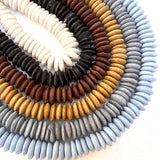 Glass saucer beads handmade in Ghana. Available in a wide variety of colors and as full 21" strands or as mini 4" strands.