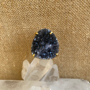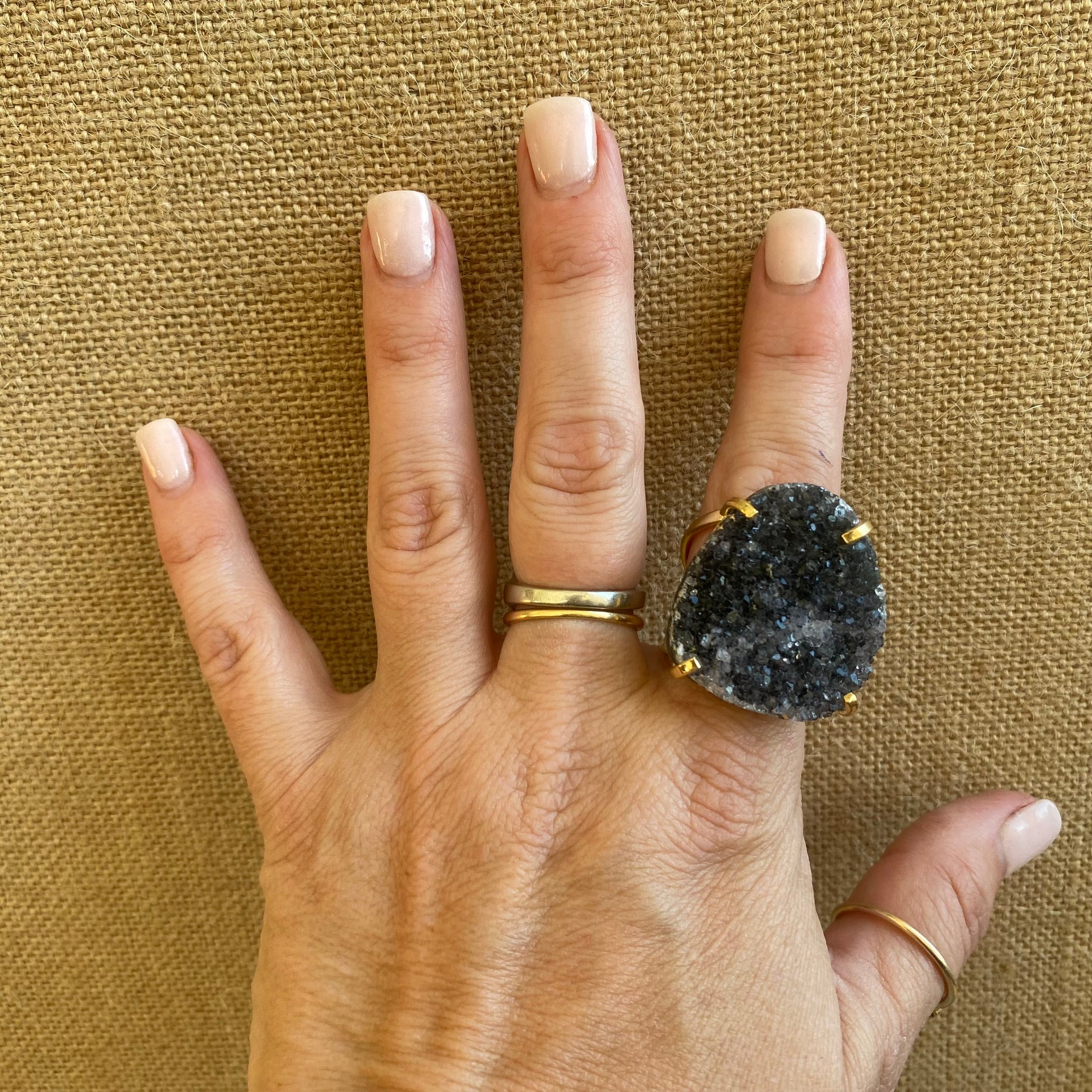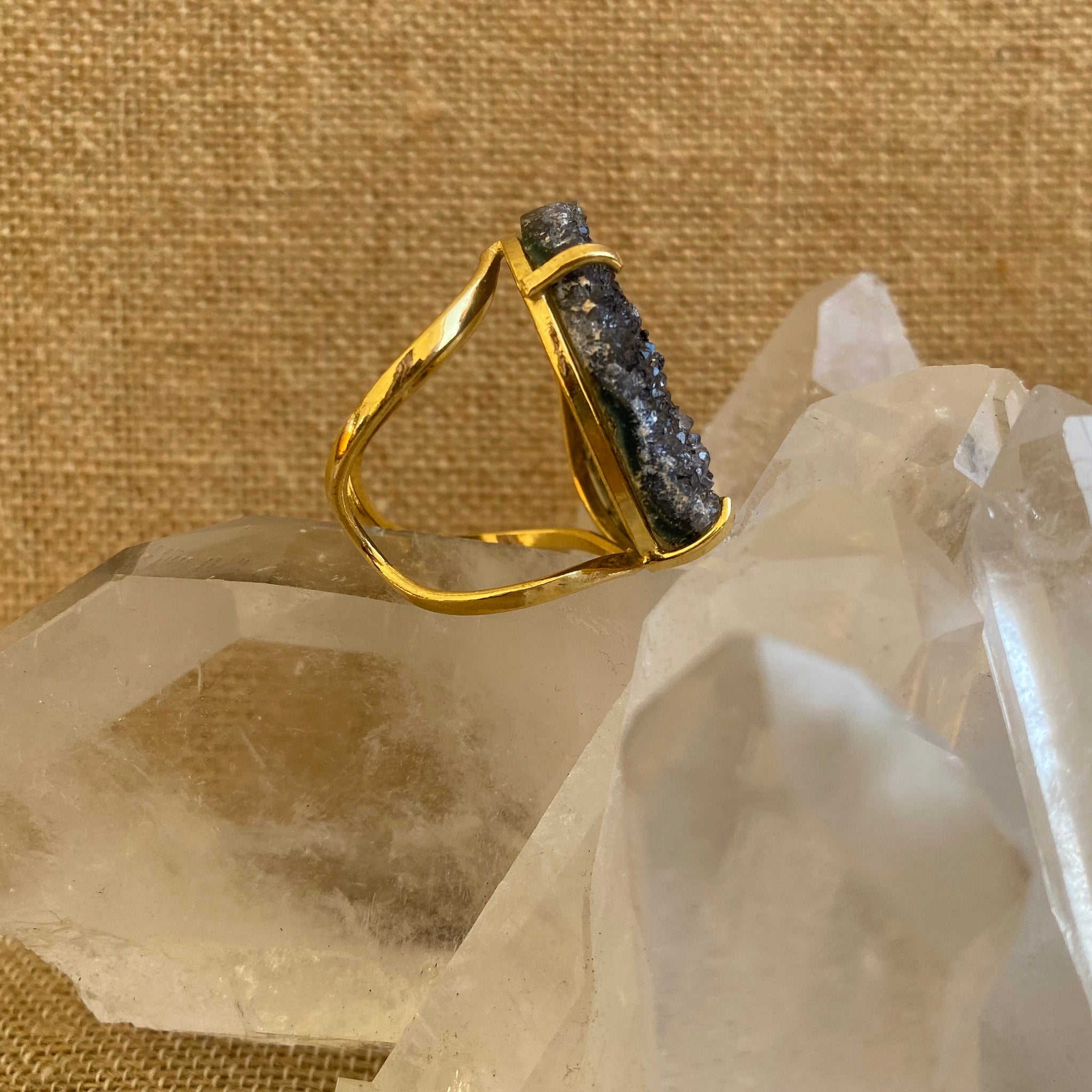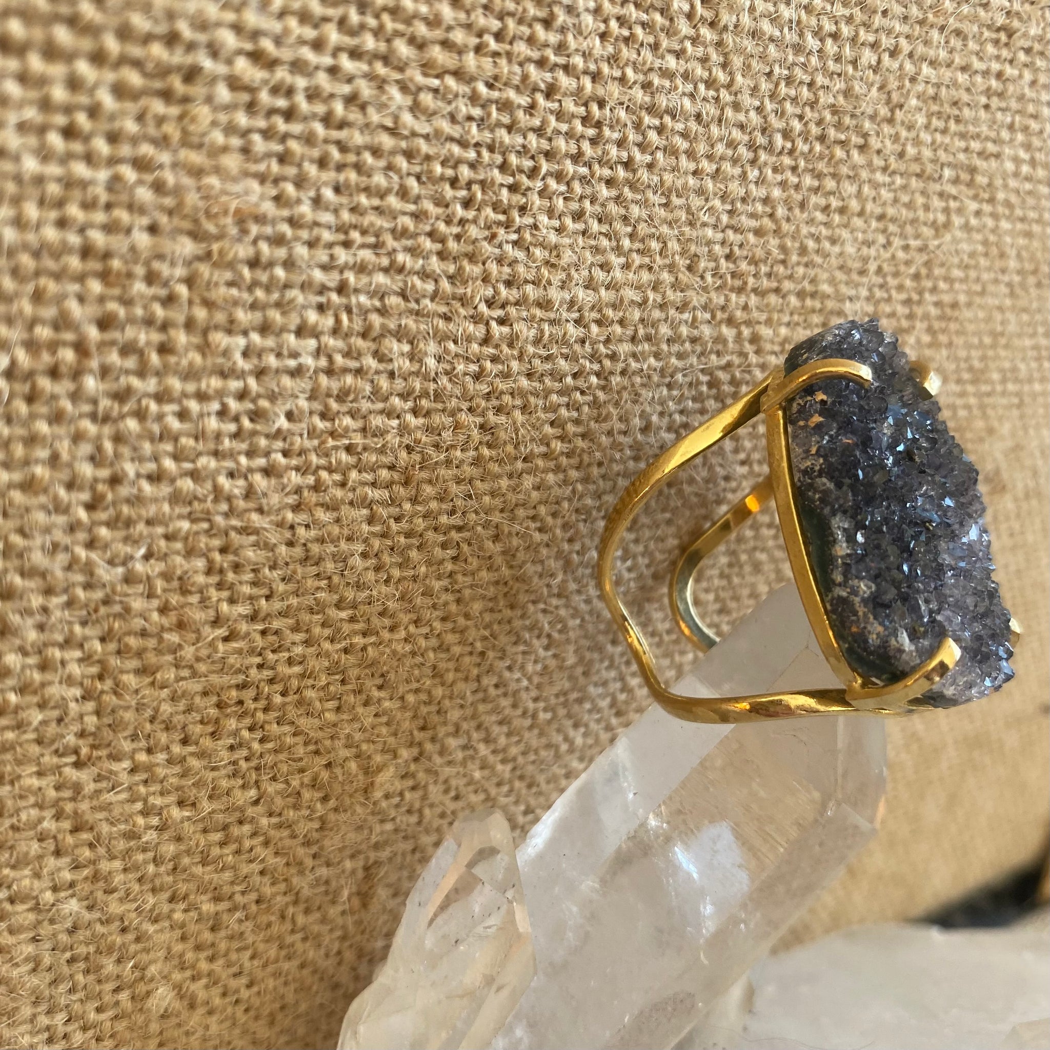 Amethyst druzy set in a custom, fully adjustable triple-plated gold ring base