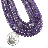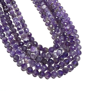 Each majestic strand of faceted round Amethyst beads contain approximately 68 beads, measuring 6mm each.