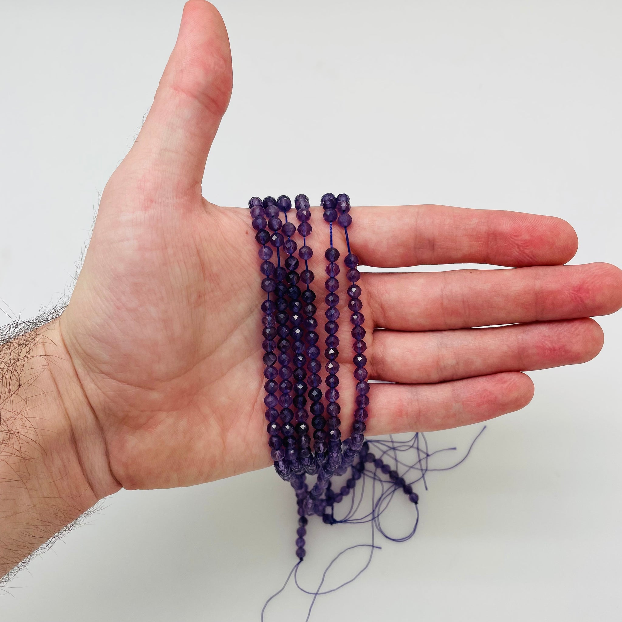 Each 15.5" inch strand of 4mm faceted rounds contains approximately 87 beads.