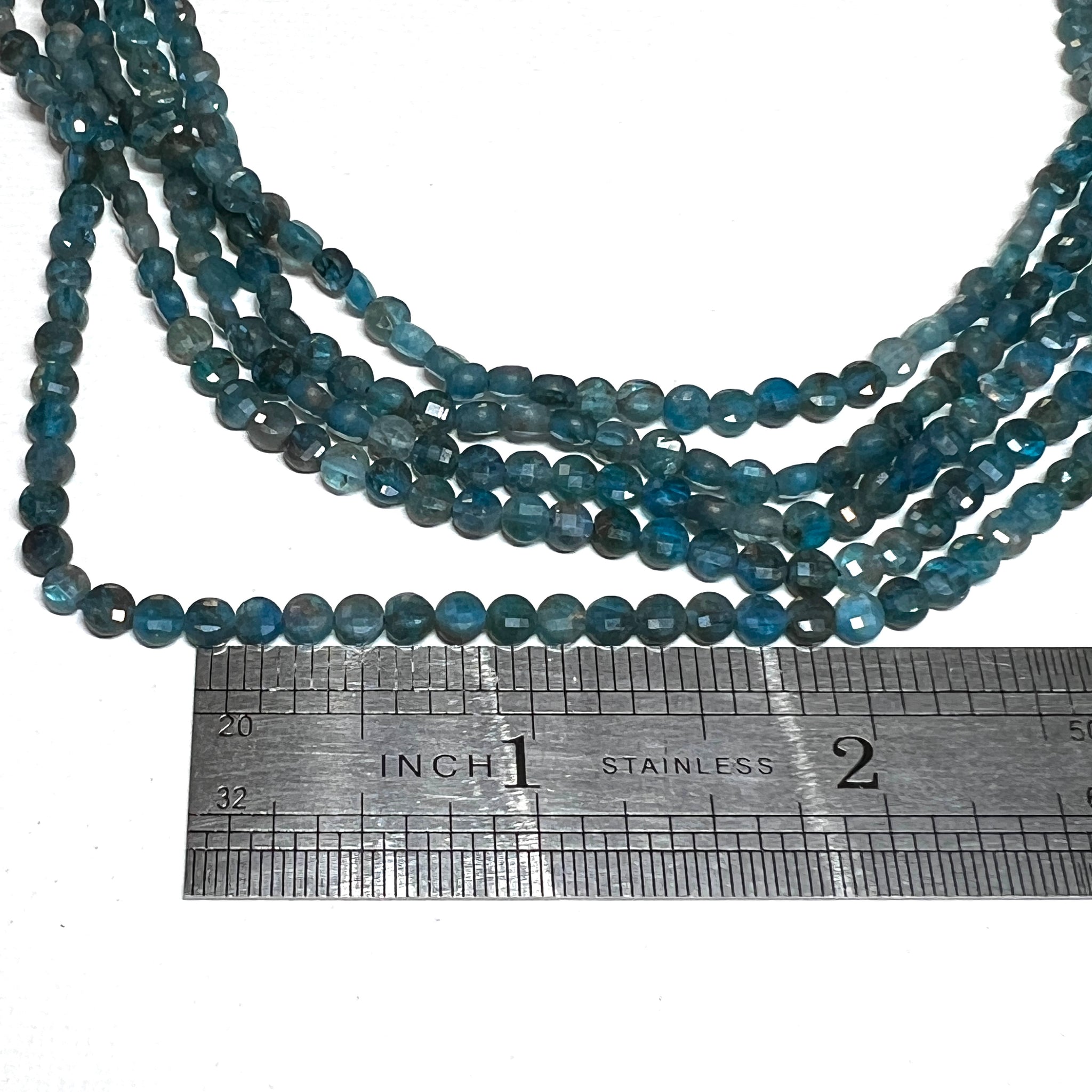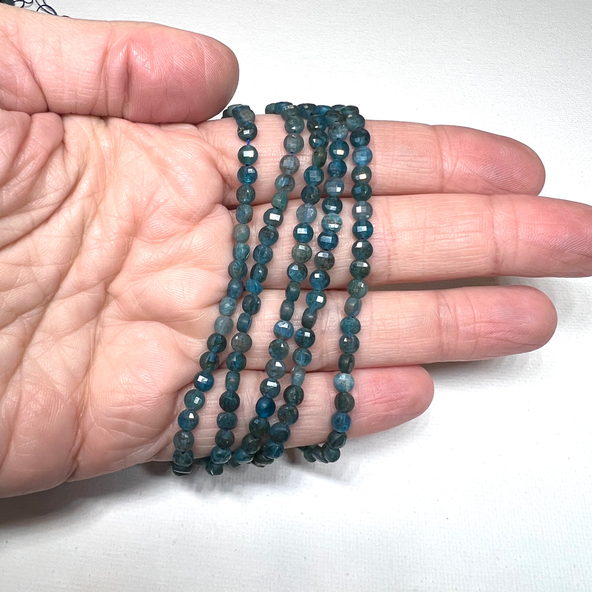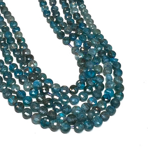 Faceted 4mm natural apatite coin shaped beads on a 15.5" strand