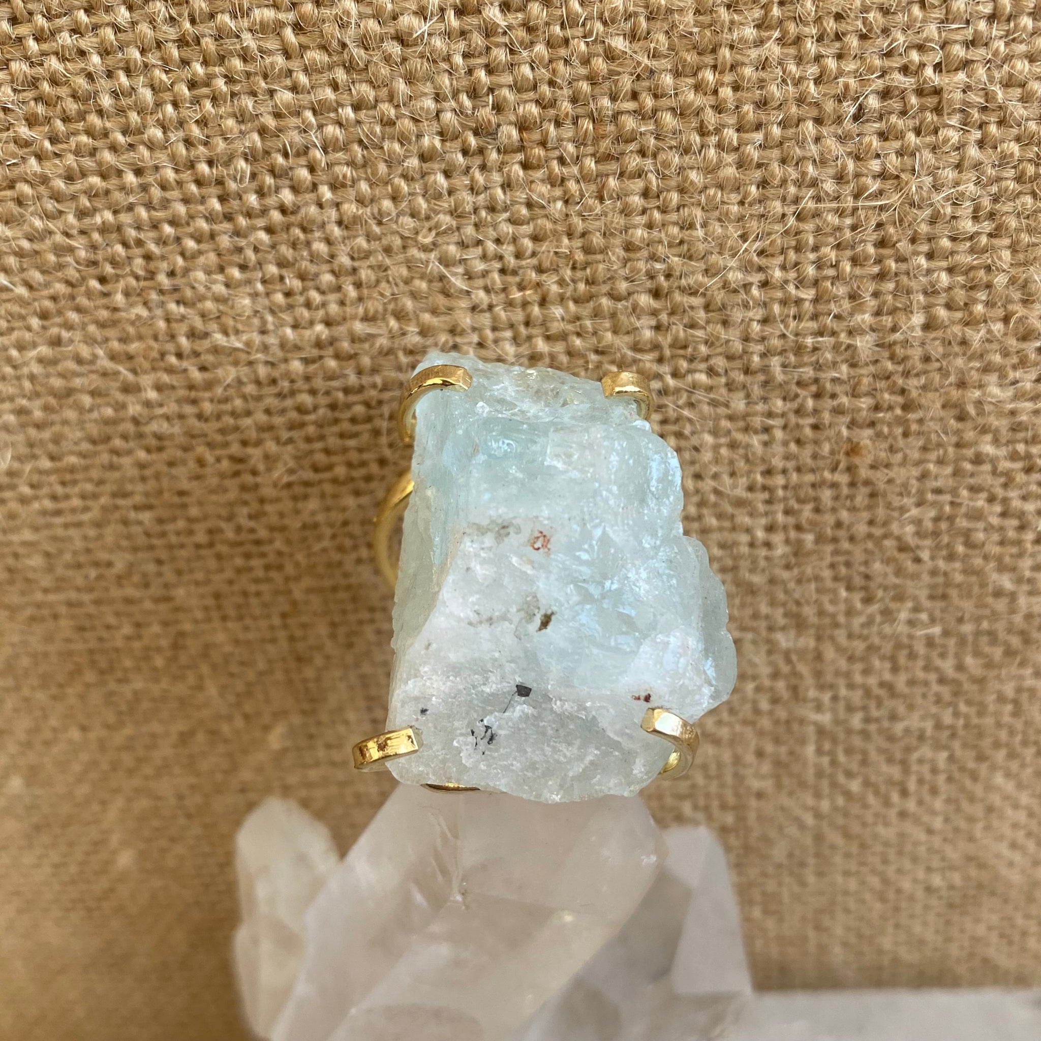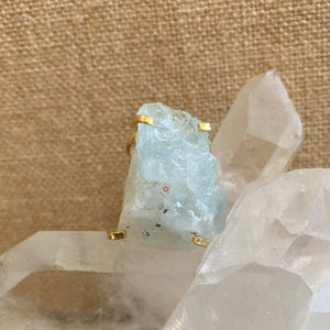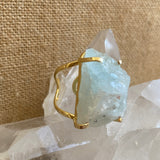 Rough Aquamarine specimen set in a custom, fully adjustable triple-plated gold ring base