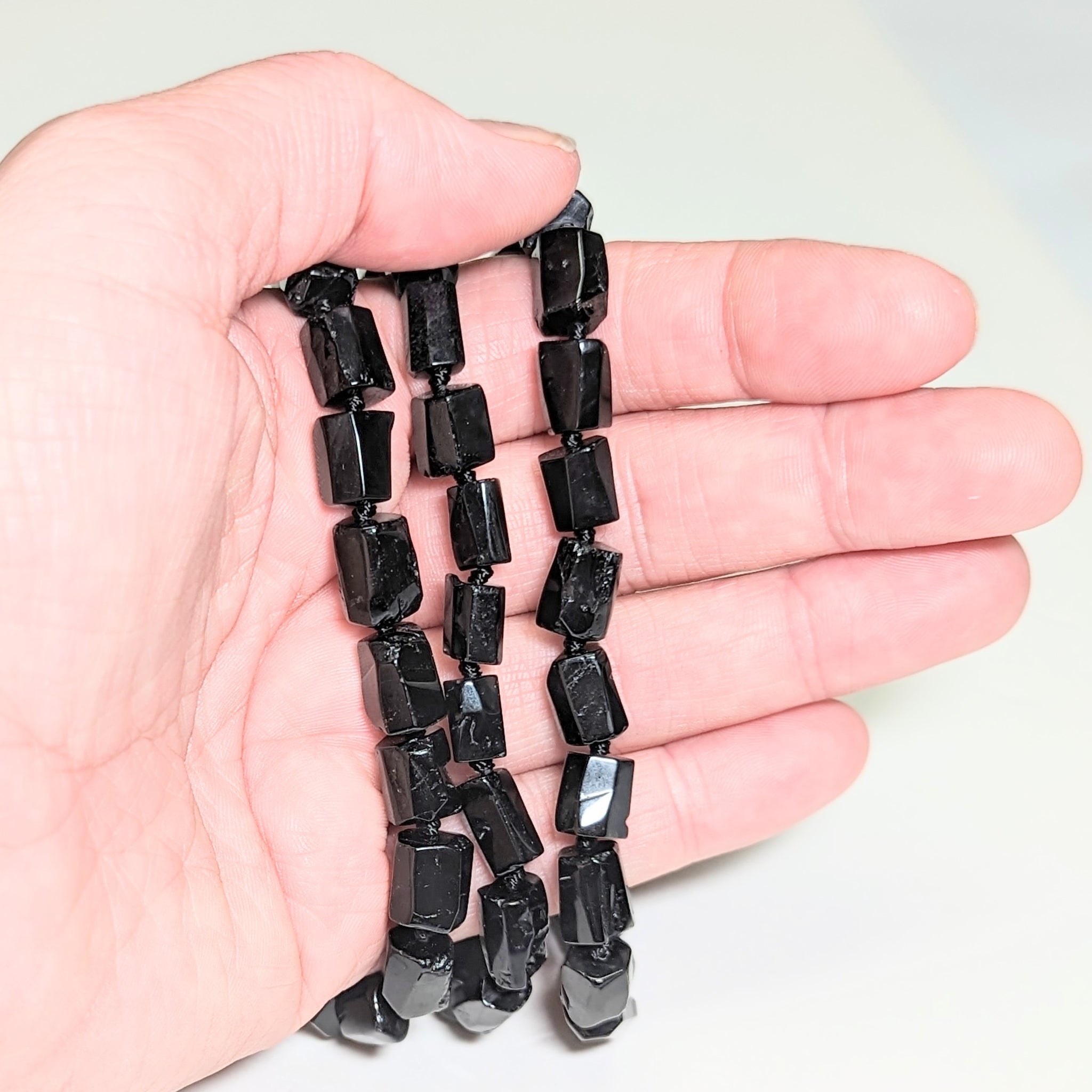 This lovely 16" strand of Black Tourmaline tumbled nuggets contain approximately 36, 10x 8mm beads.
