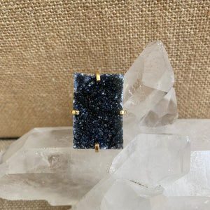 Black druzy set in a custom, fully adjustable triple-plated gold ring base