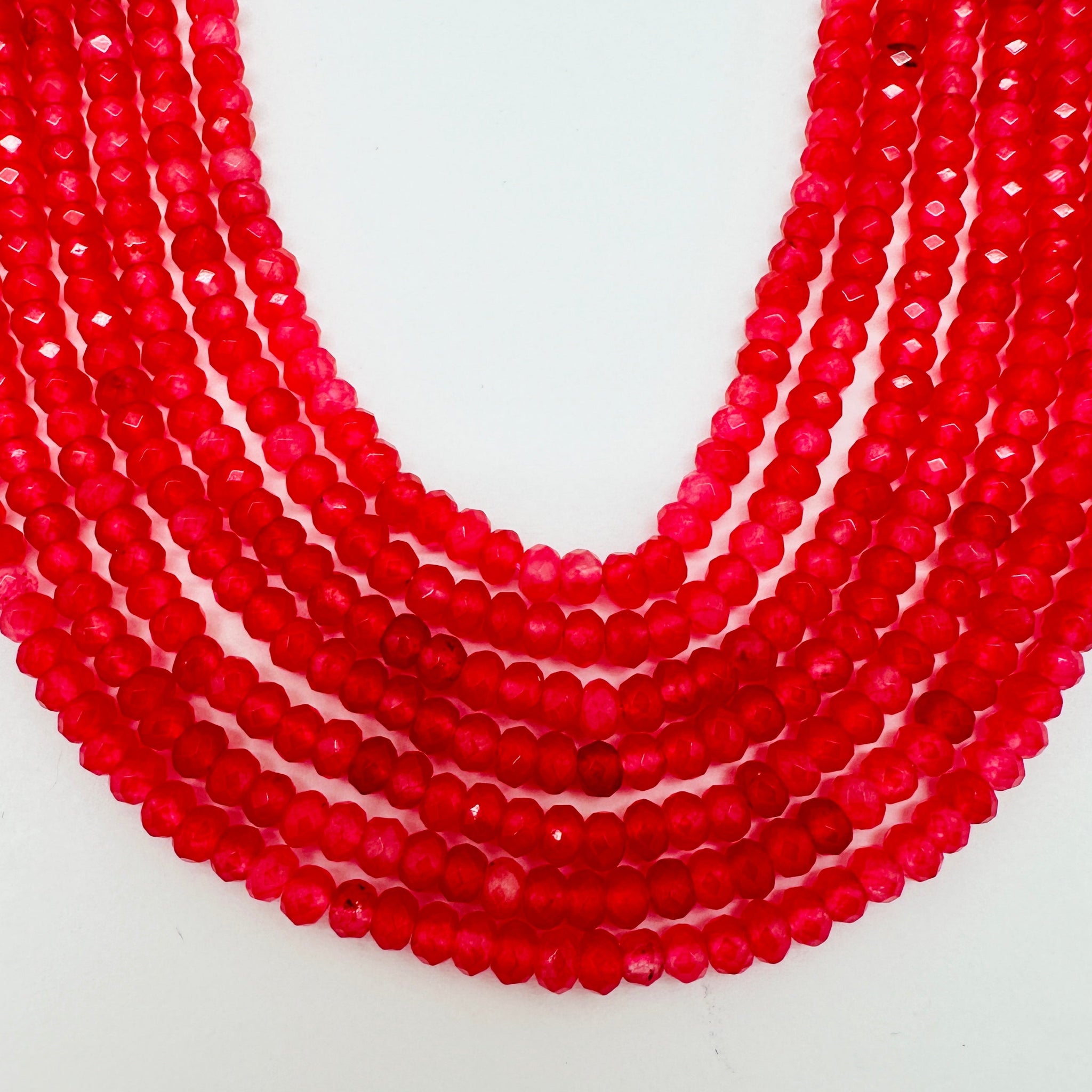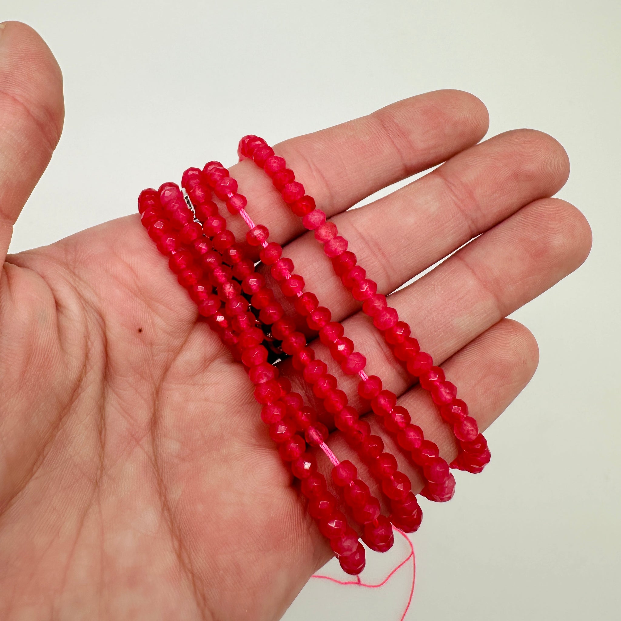 Pink Dyed Jade Faceted Rondelle Beads size 4.5x3mm.