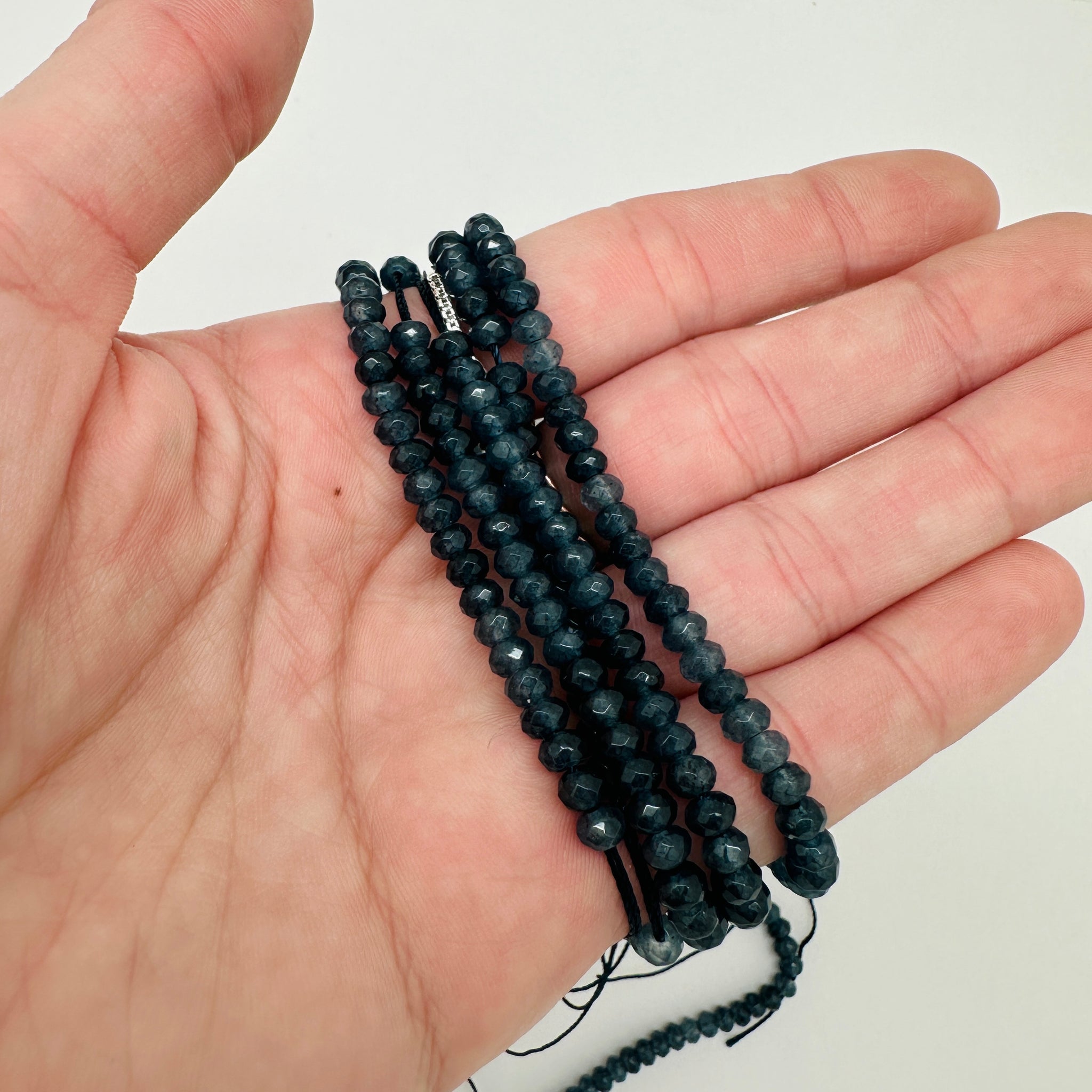 4x2mm dyed Jade faceted rondelle bead strands in Marine Blue.