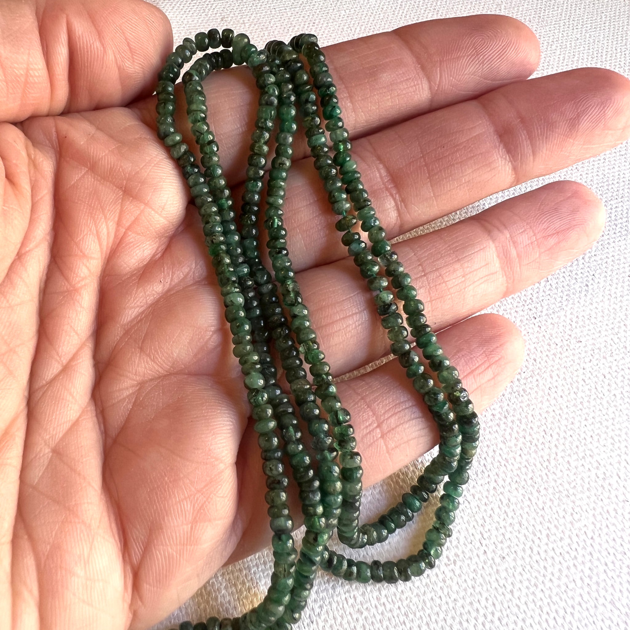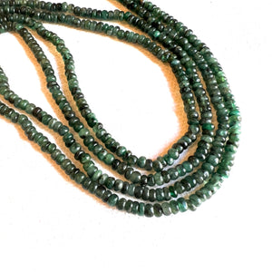 Natural dark green emeralds beautifully cut into smooth rondelles.