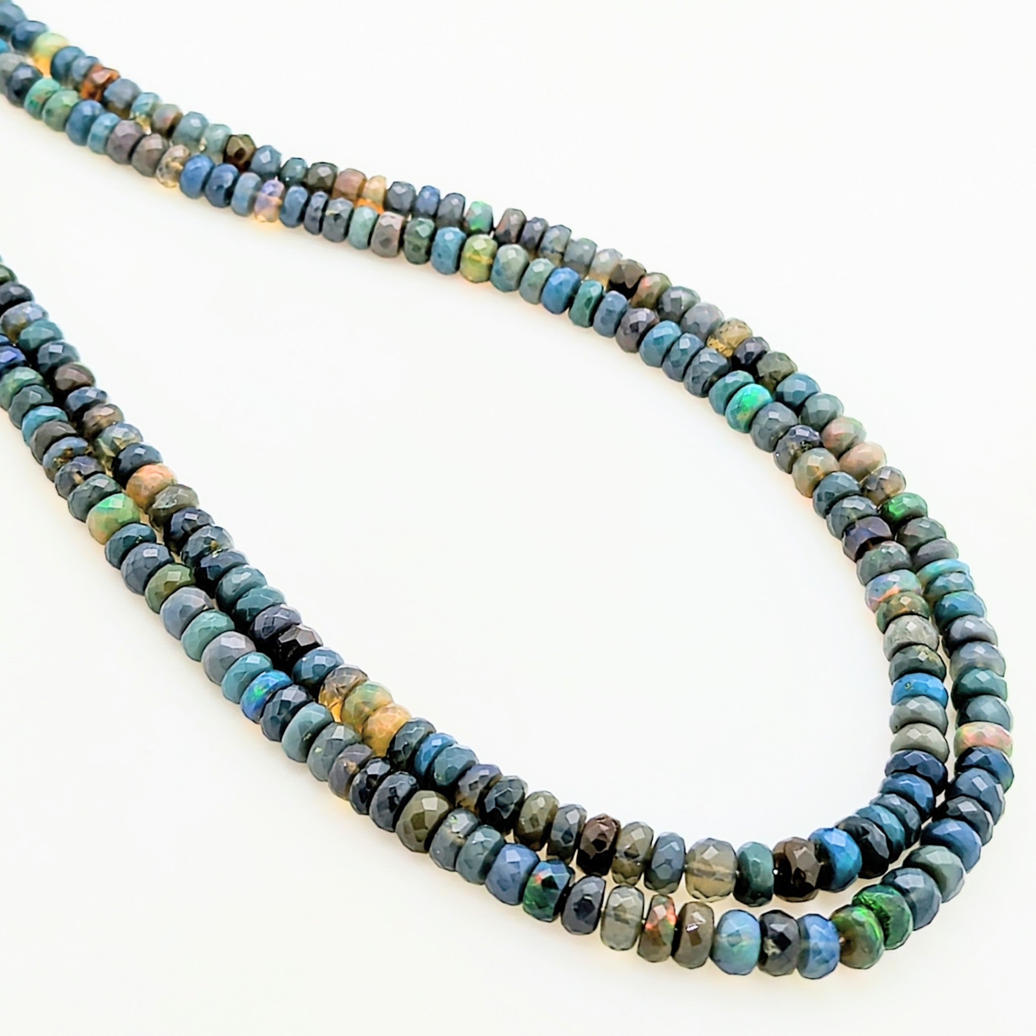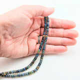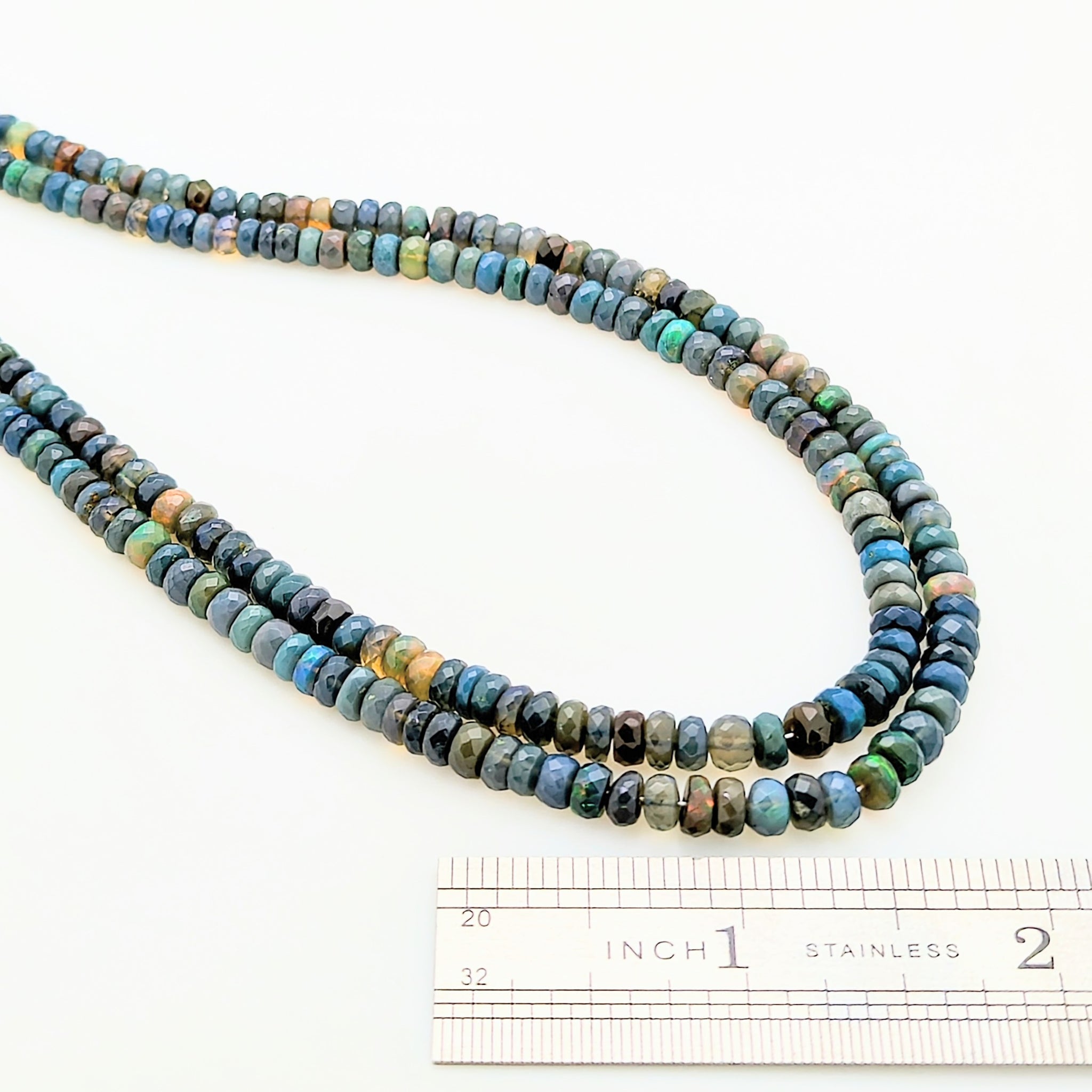 This 16" slightly graduated strand of Ethiopian Blue Opals contains approximately 157 beads, slightly graduating from 4mm-5mm.