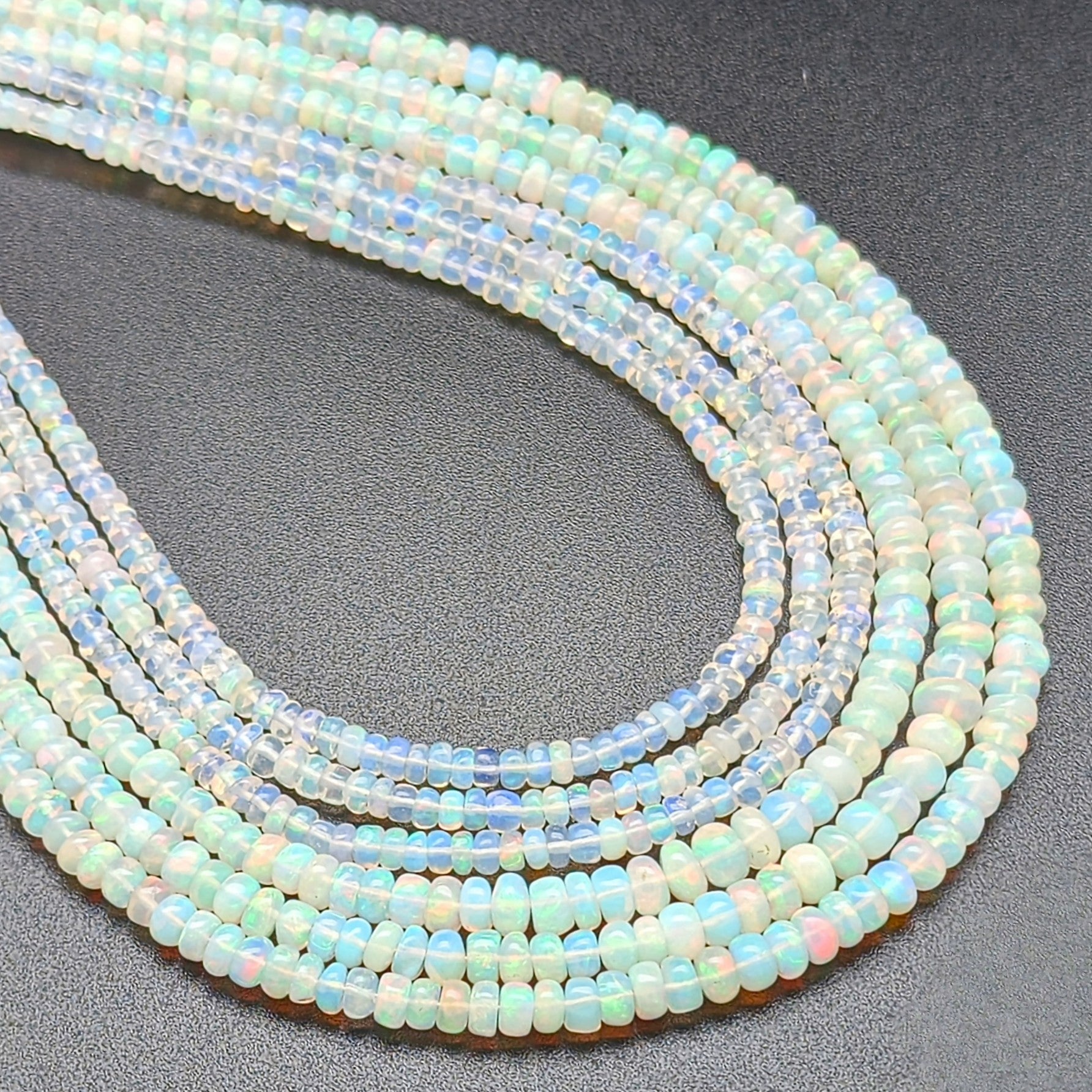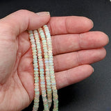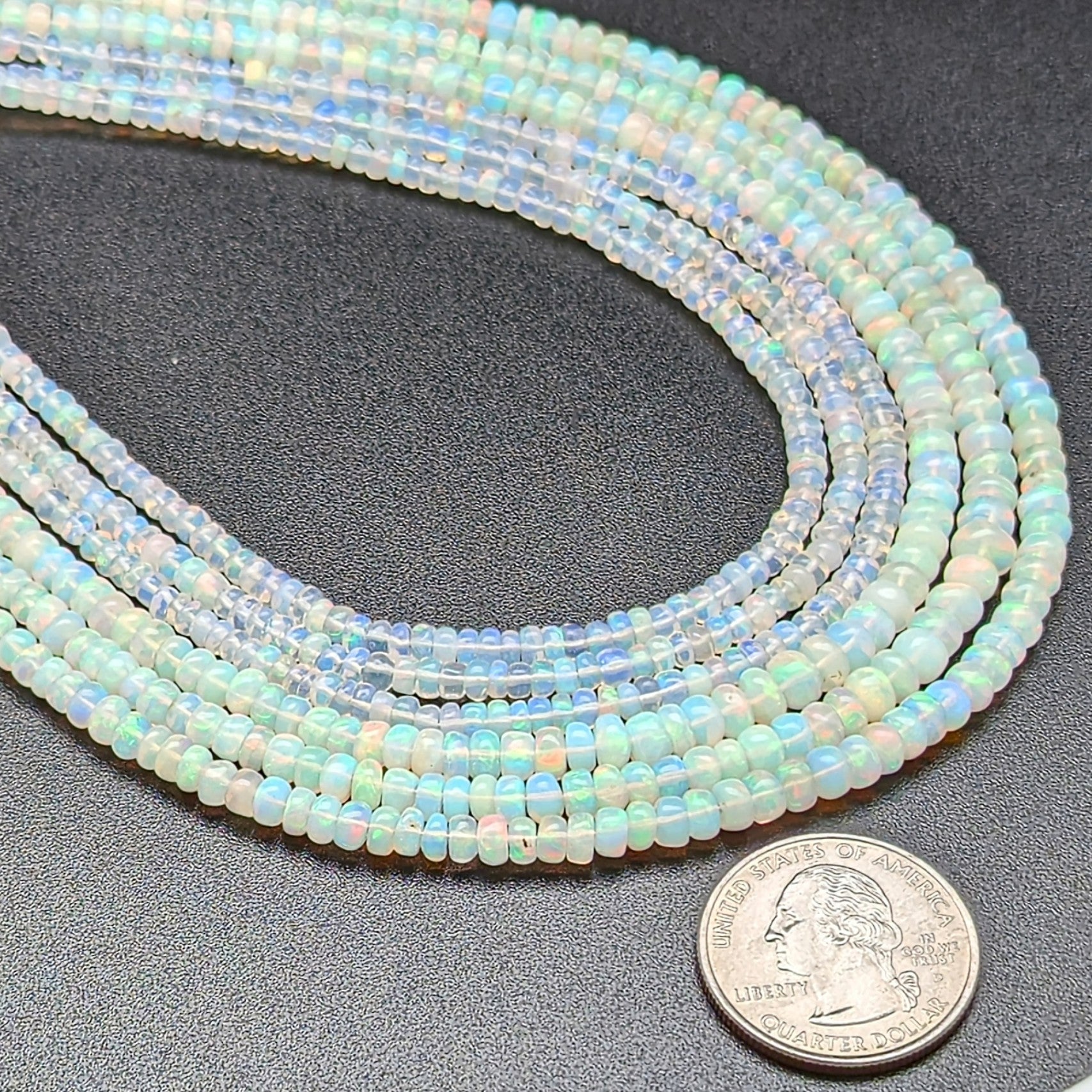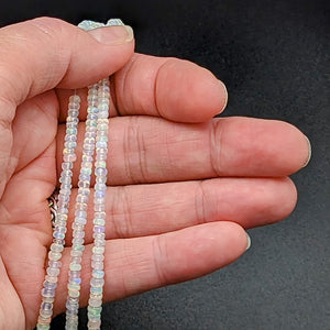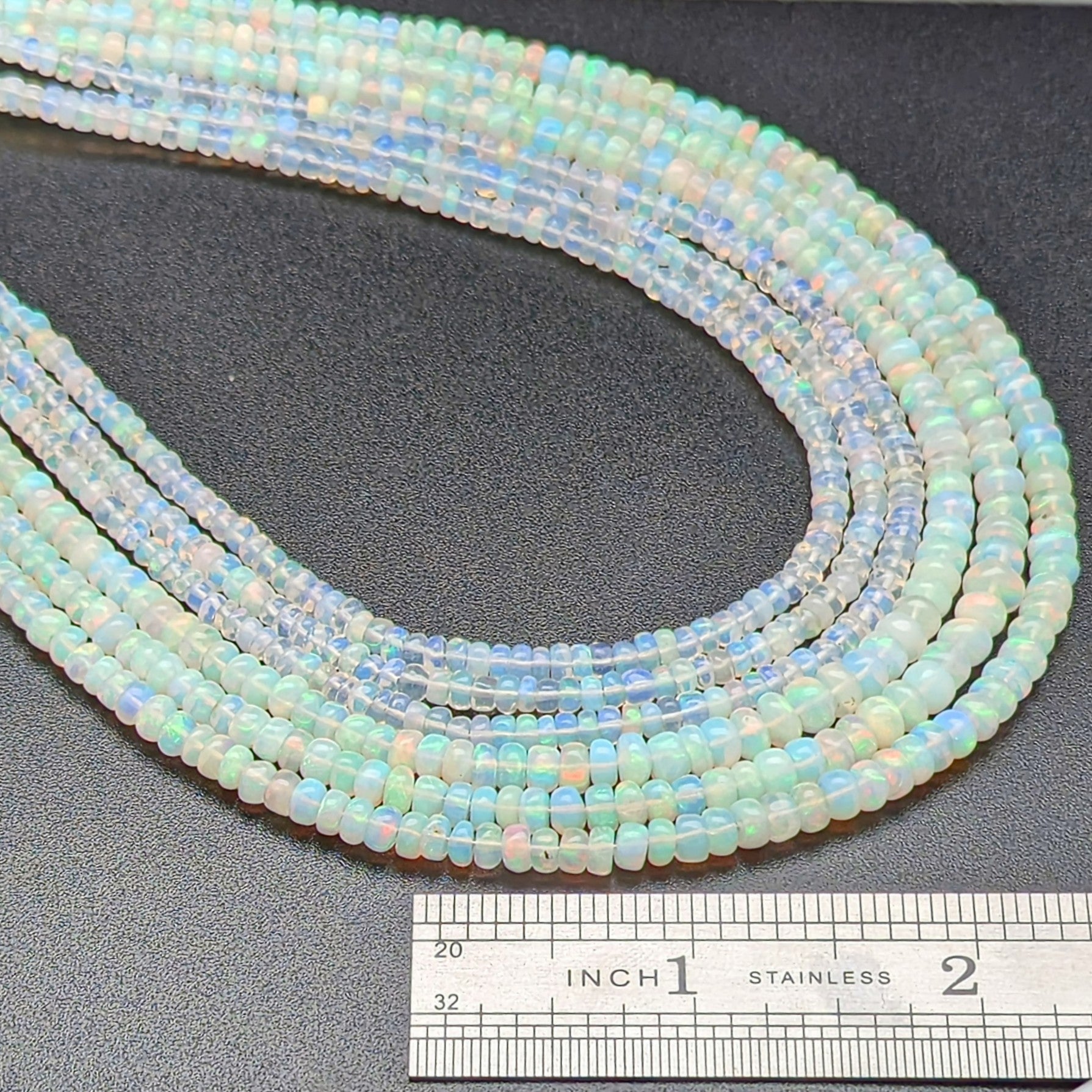 The 17" strand of Ethiopian White Opals contains approximately 218 beads, measuring 4mm each.