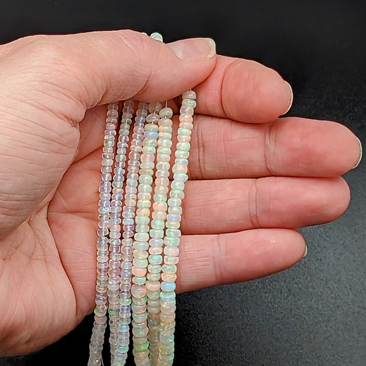 The 16" graduated strand of Ethiopian White Opals contains approximately 167 beads, graduating from 4mm-6mm.