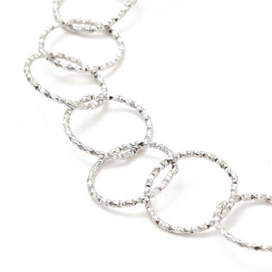 Plated stainless steel textured large Rolo chain necklace with lobster claw clasp and extender.