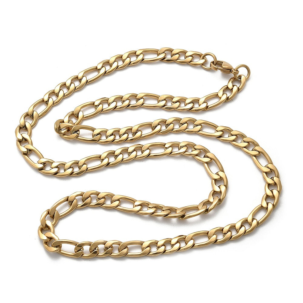 Plated stainless steel Figaro chain necklace with lobster claw clasp measuring approximately 21.5" in length.