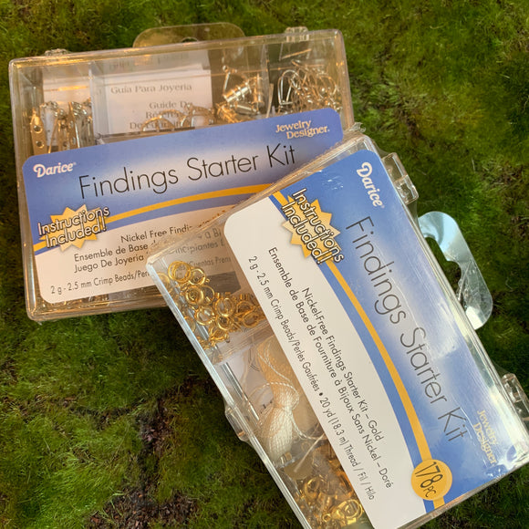 Jewelry making supplies to get you started making your own jewelry. Kit includes clasps, cord, pin backs, and earring backs.