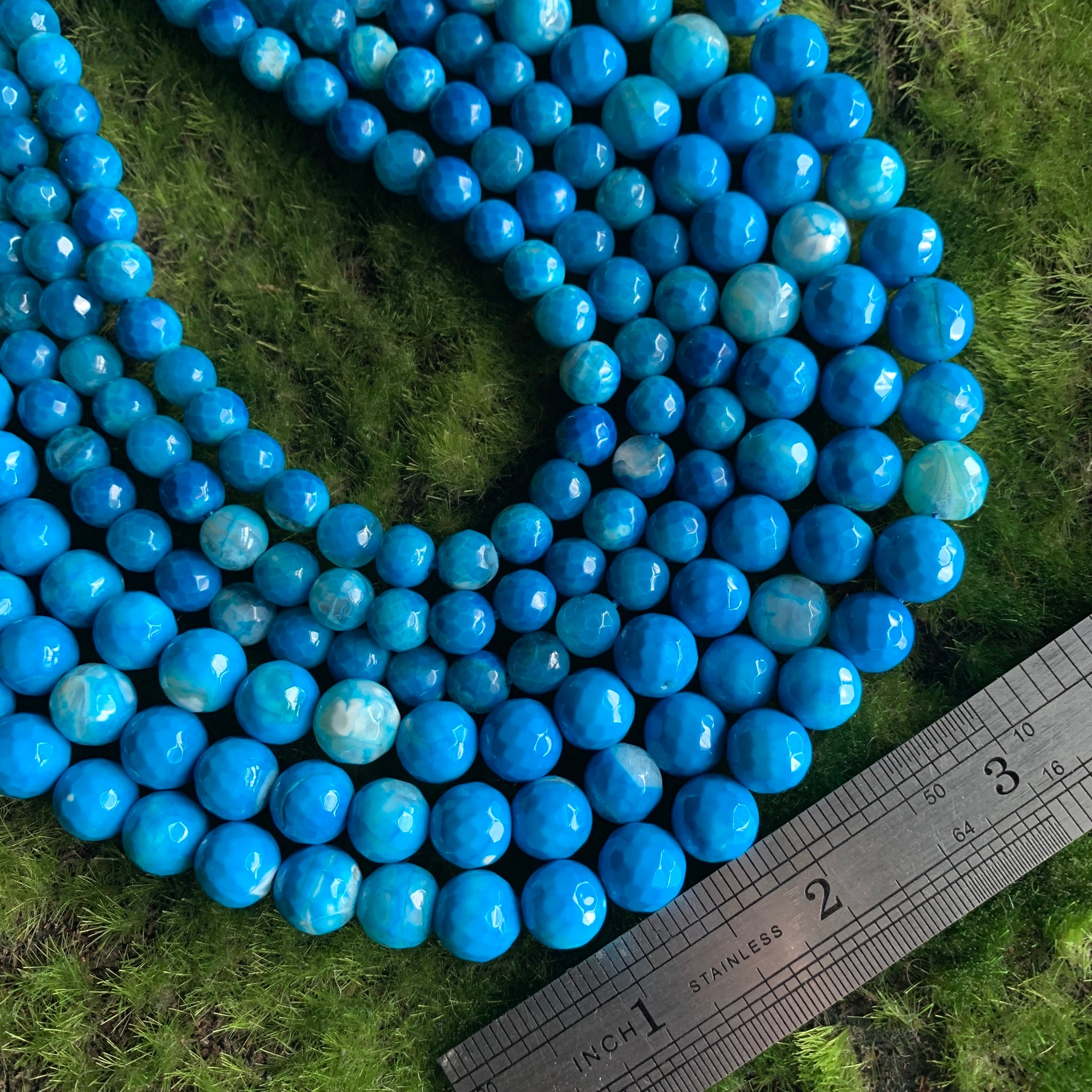 Dyed Fire Agate faceted round beads available in 8 and 10mm sizes