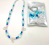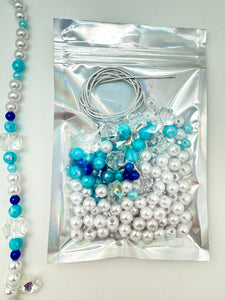 Assorted quantities and sizes: 6mm-12mm Acrylic crystal ICE beads, crystal snowflake beads, Large hole acrylic pearls, Blue pearls, blue crystal acrylic beads.