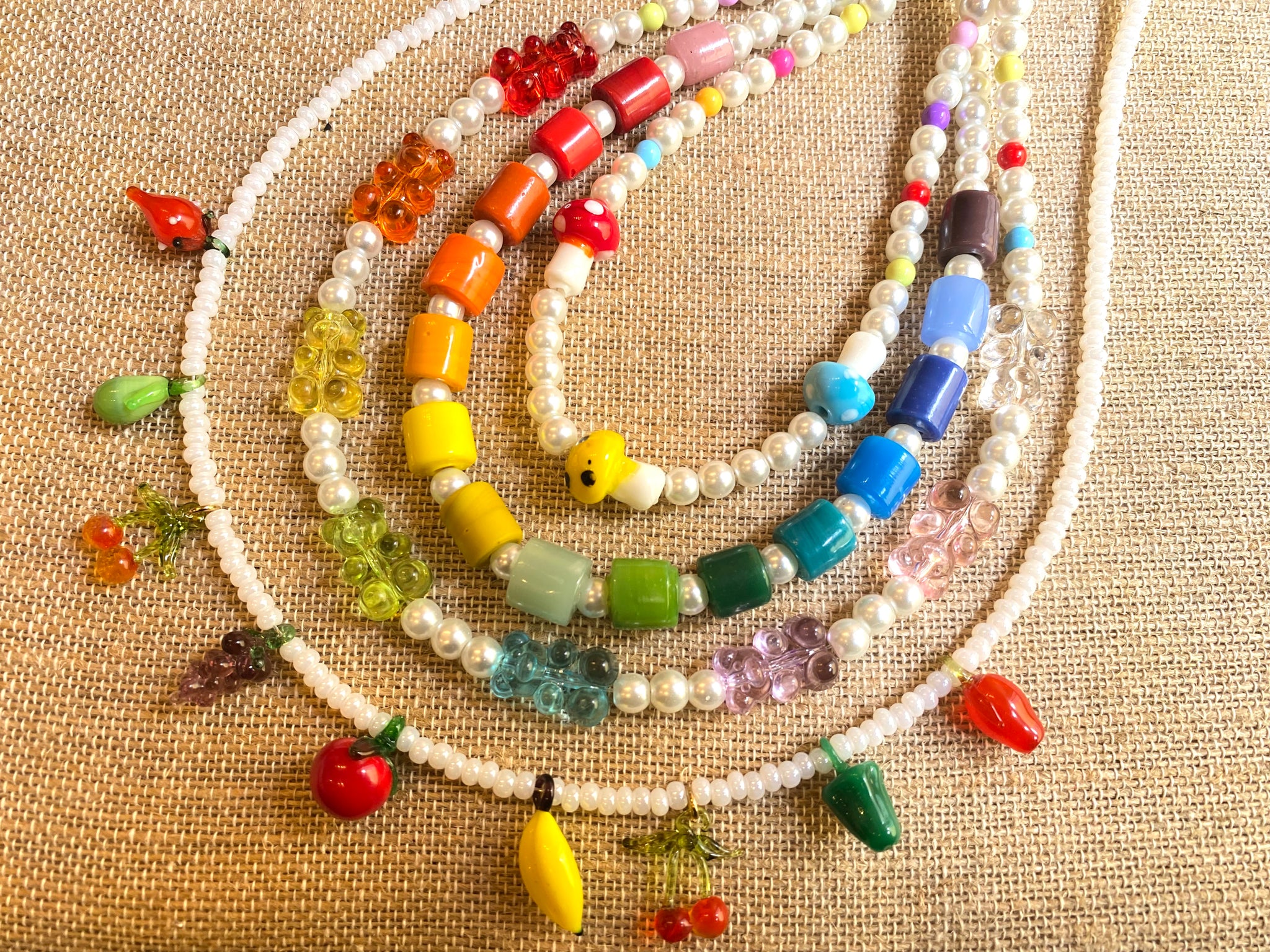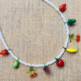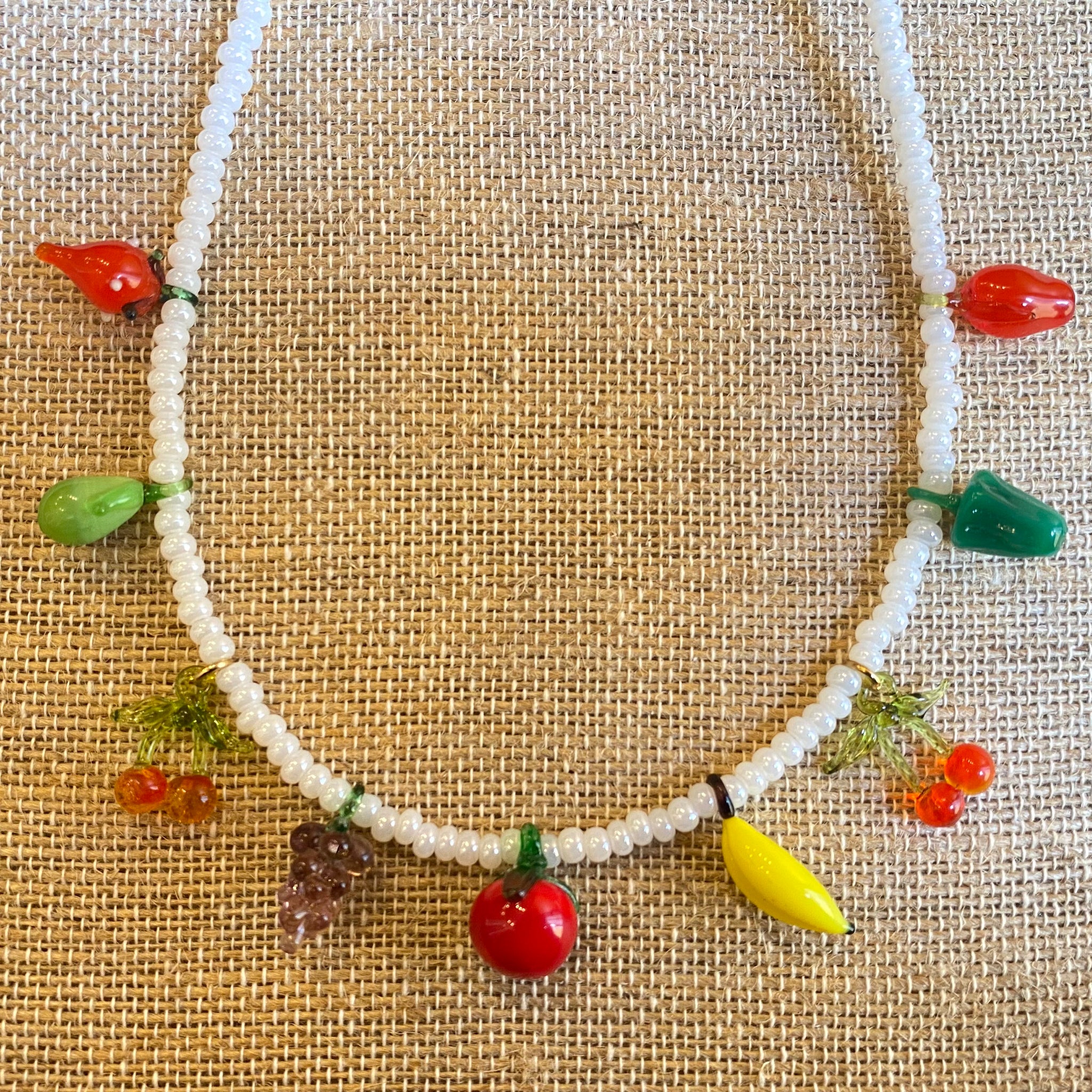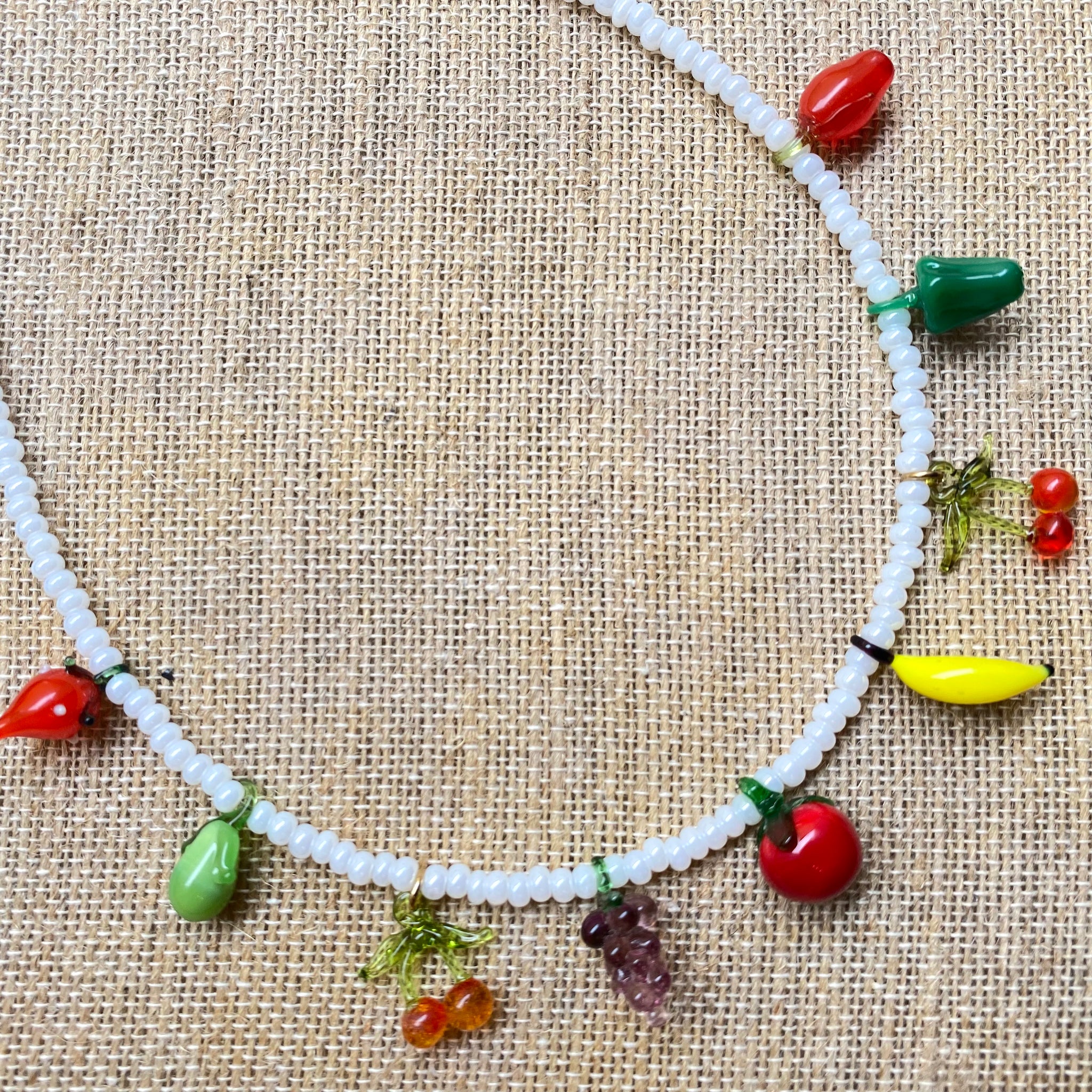 Perfect for every season! These vintage glass fruit charms are ready to pair with pearl white seed beads to make a delicious necklace!