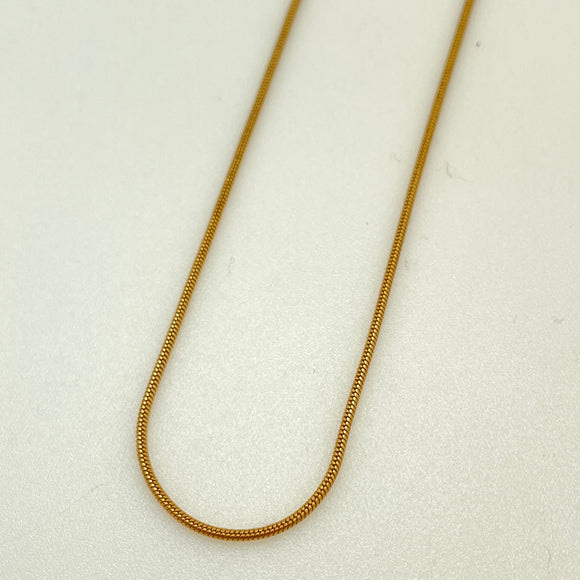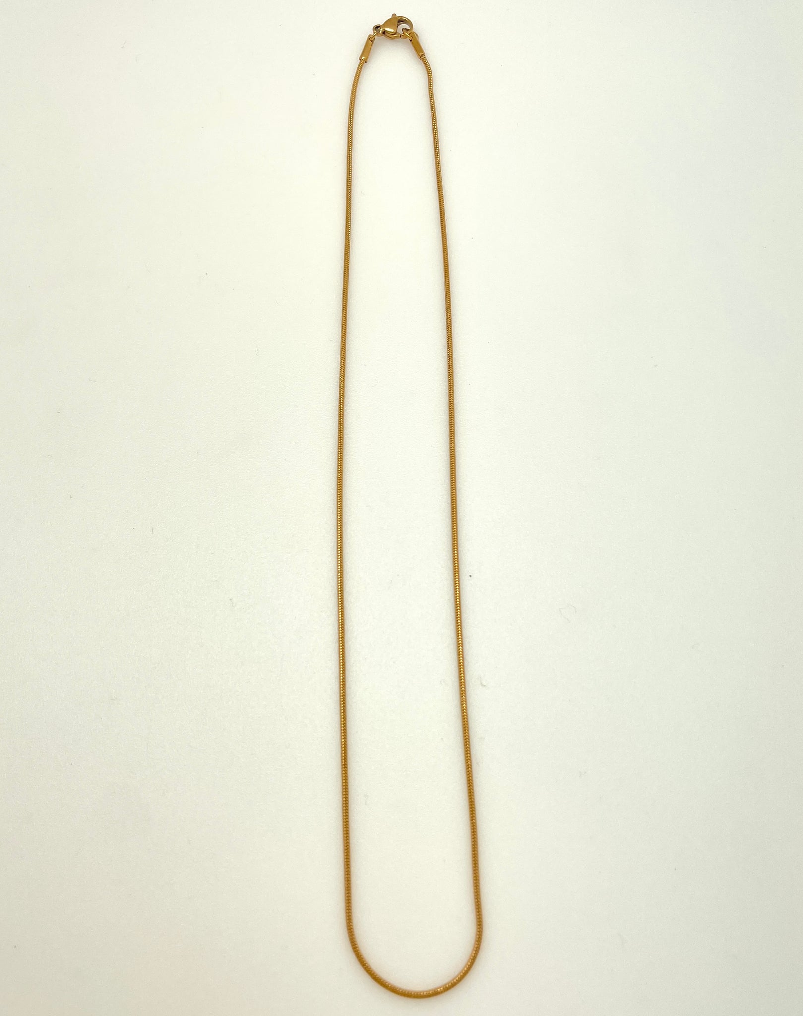 Plated stainless steel snake chain with lobster claw clasp measuring about 18" in length. Very sturdy!