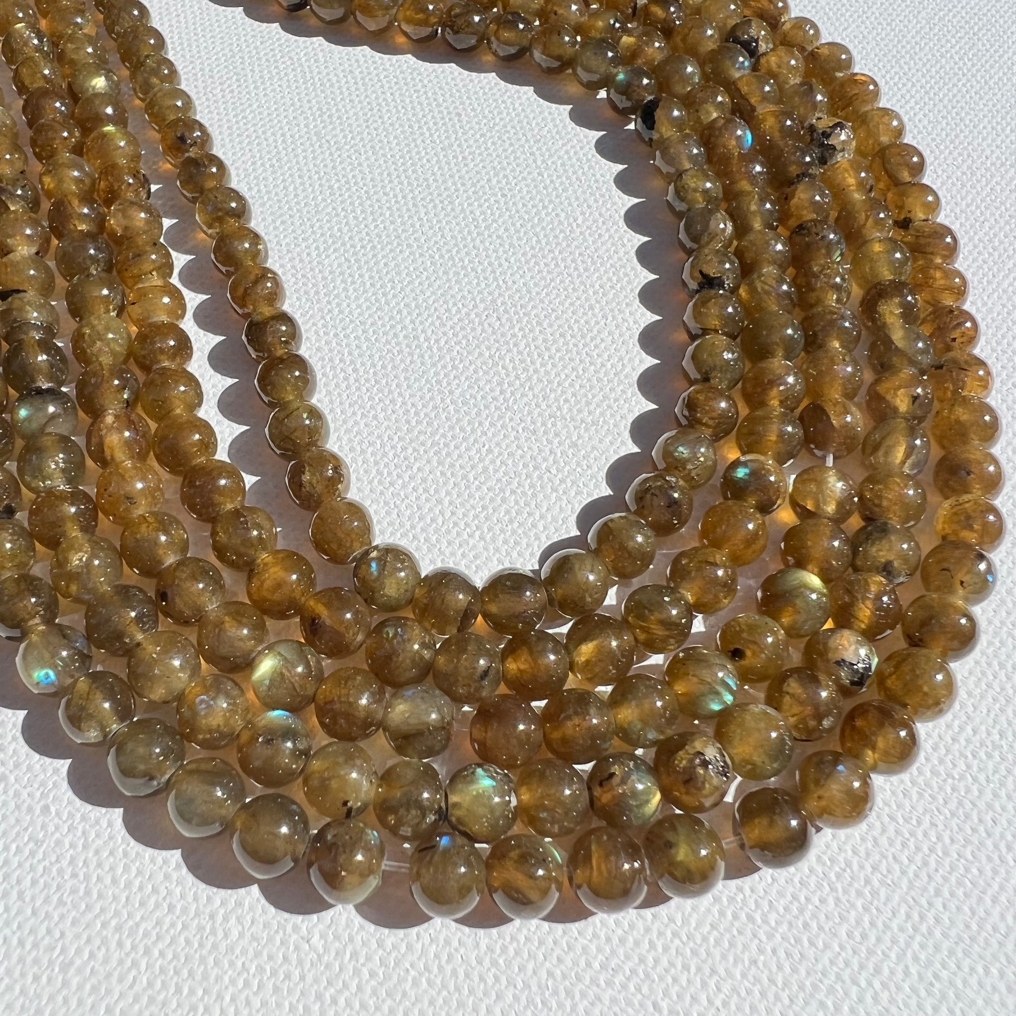 These stunning sparkling green labradorite round beads totally remind us of the perfect sunlit day on the swamp. We can can't get enough!