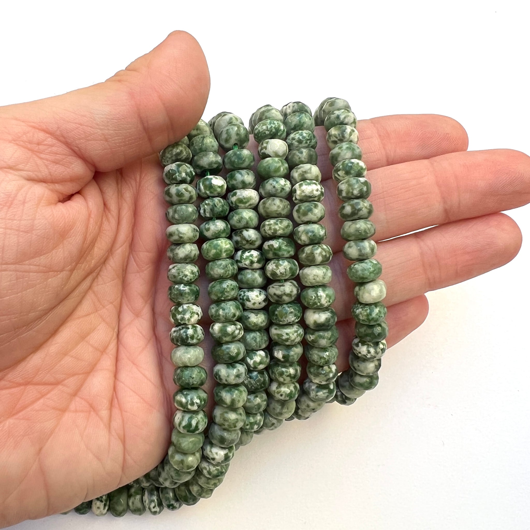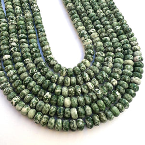 Green Spot Jasper 5x8mm faceted rondelle beads.