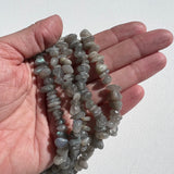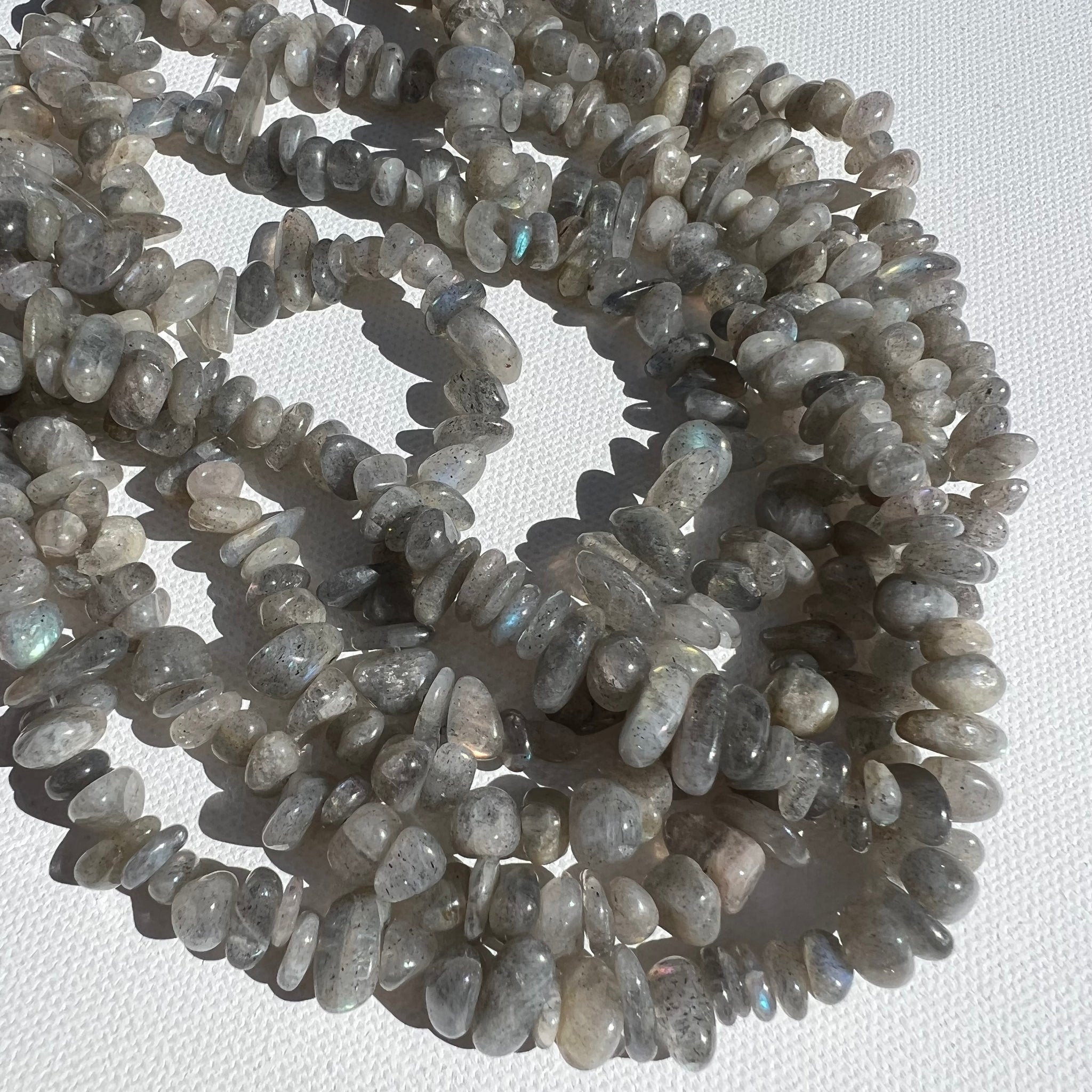 Tumbled labradorite chips on 16" strands. Beads measure approximately 8x4mm