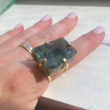 Smooth labradorite set in a custom, fully adjustable triple-plated gold ring base