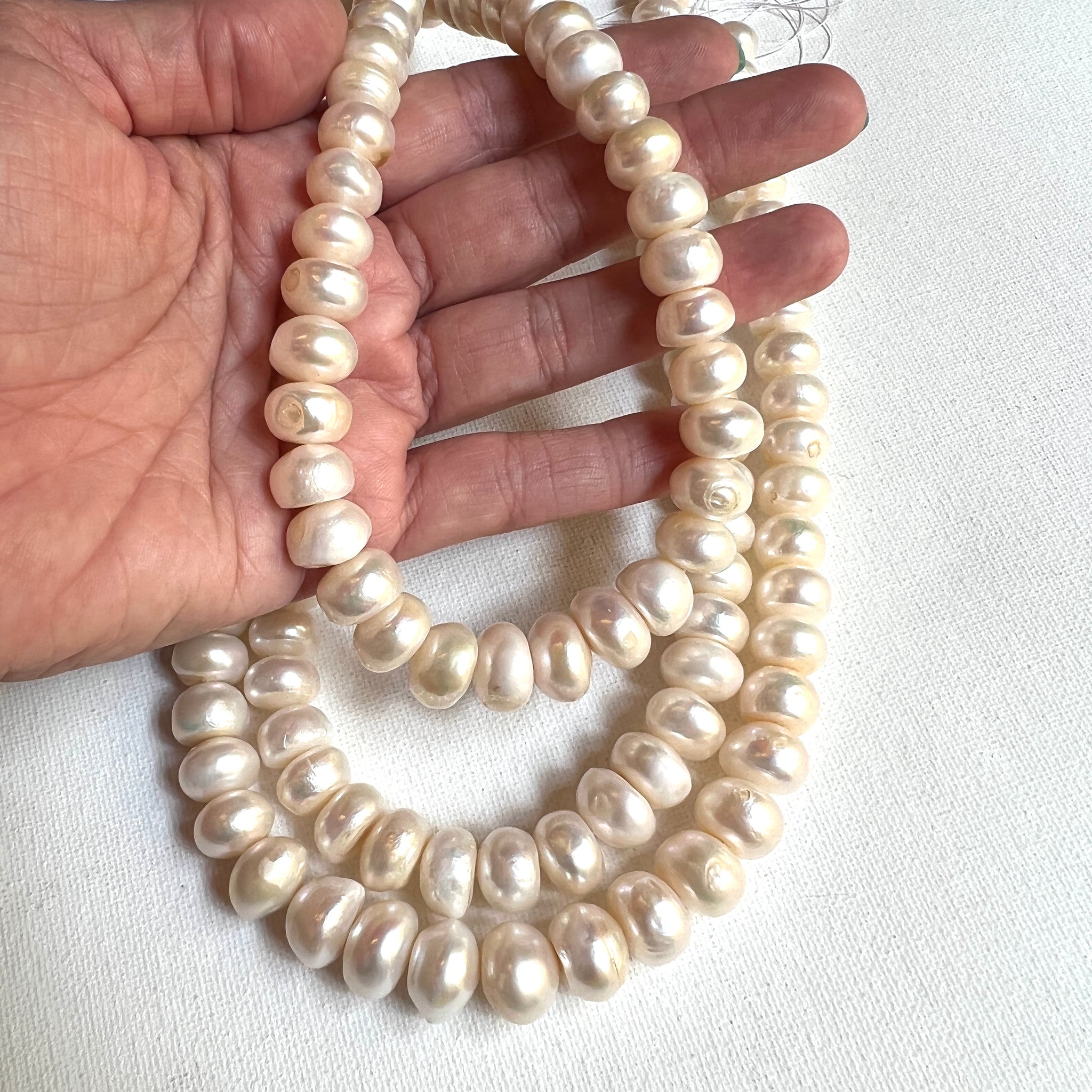 Beautiful white freshwater water pearl rondelles. Lovely alone or spectacular in a multi-layered necklace