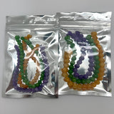 1/2 length strands of our popular dyed jade in carefully selected Mardi Gras color palettes