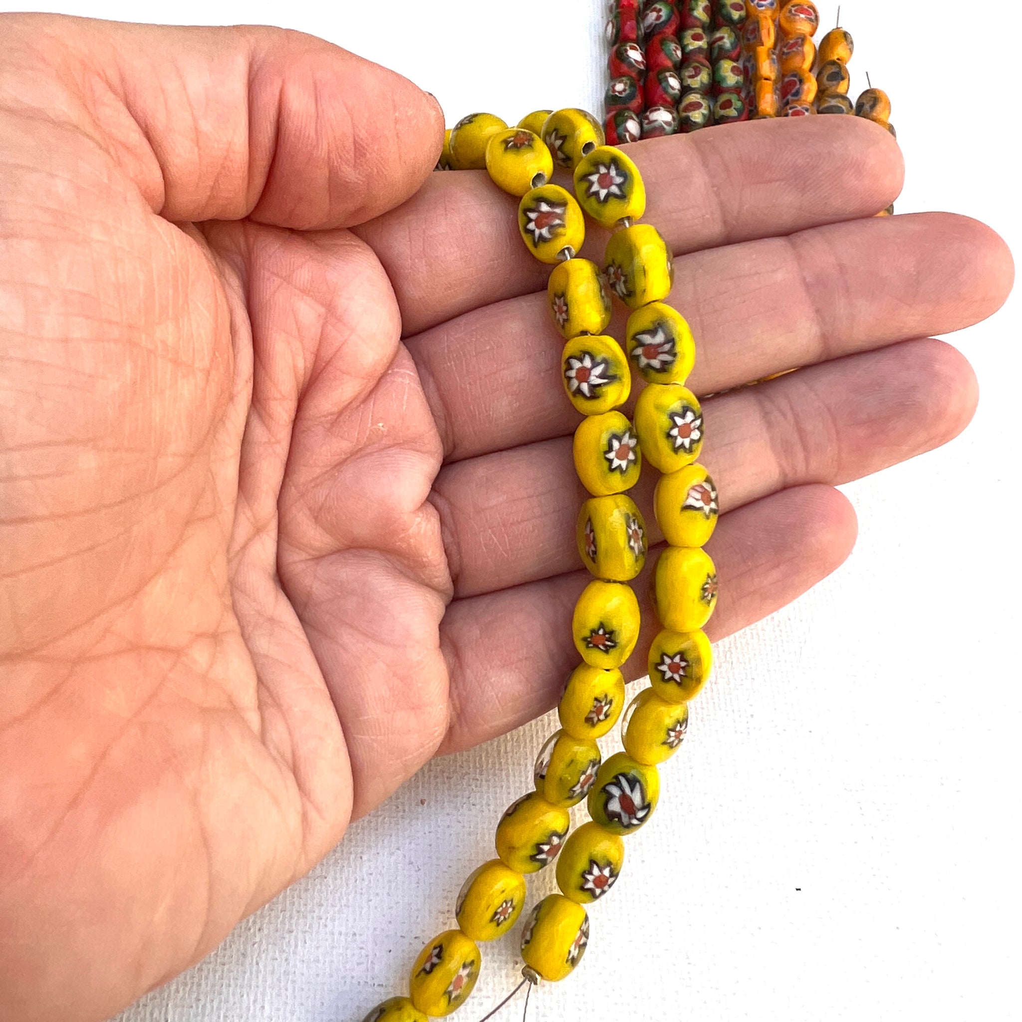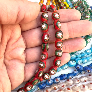 Stunning handmade glass millefiori oval shaped beads on 8" strands