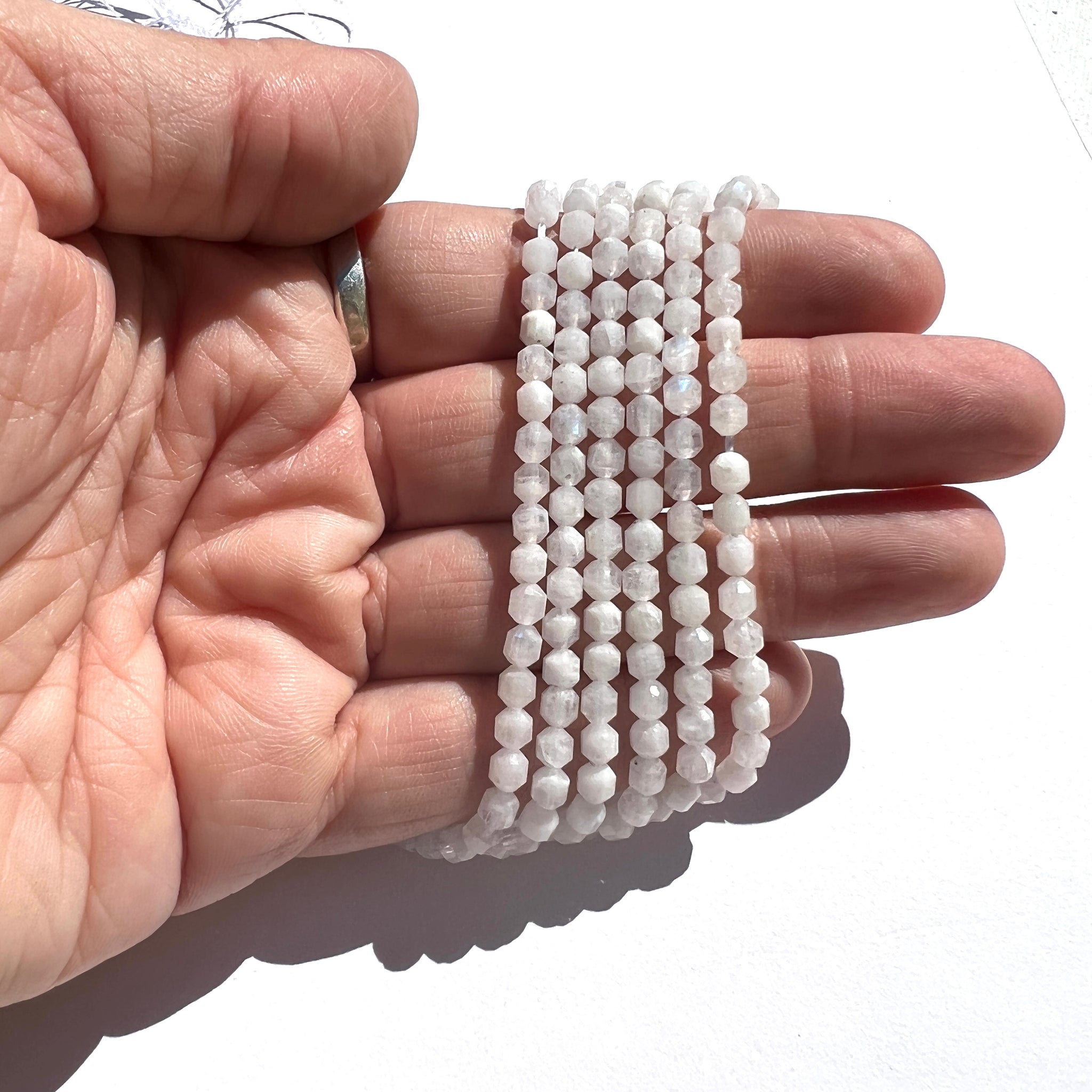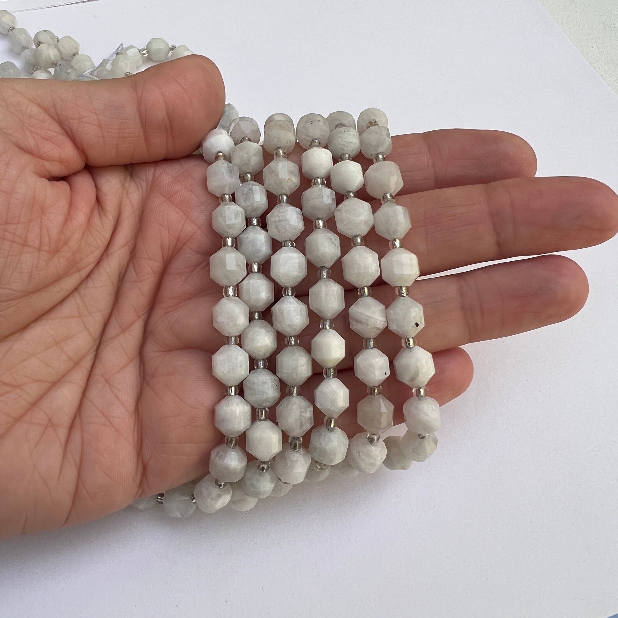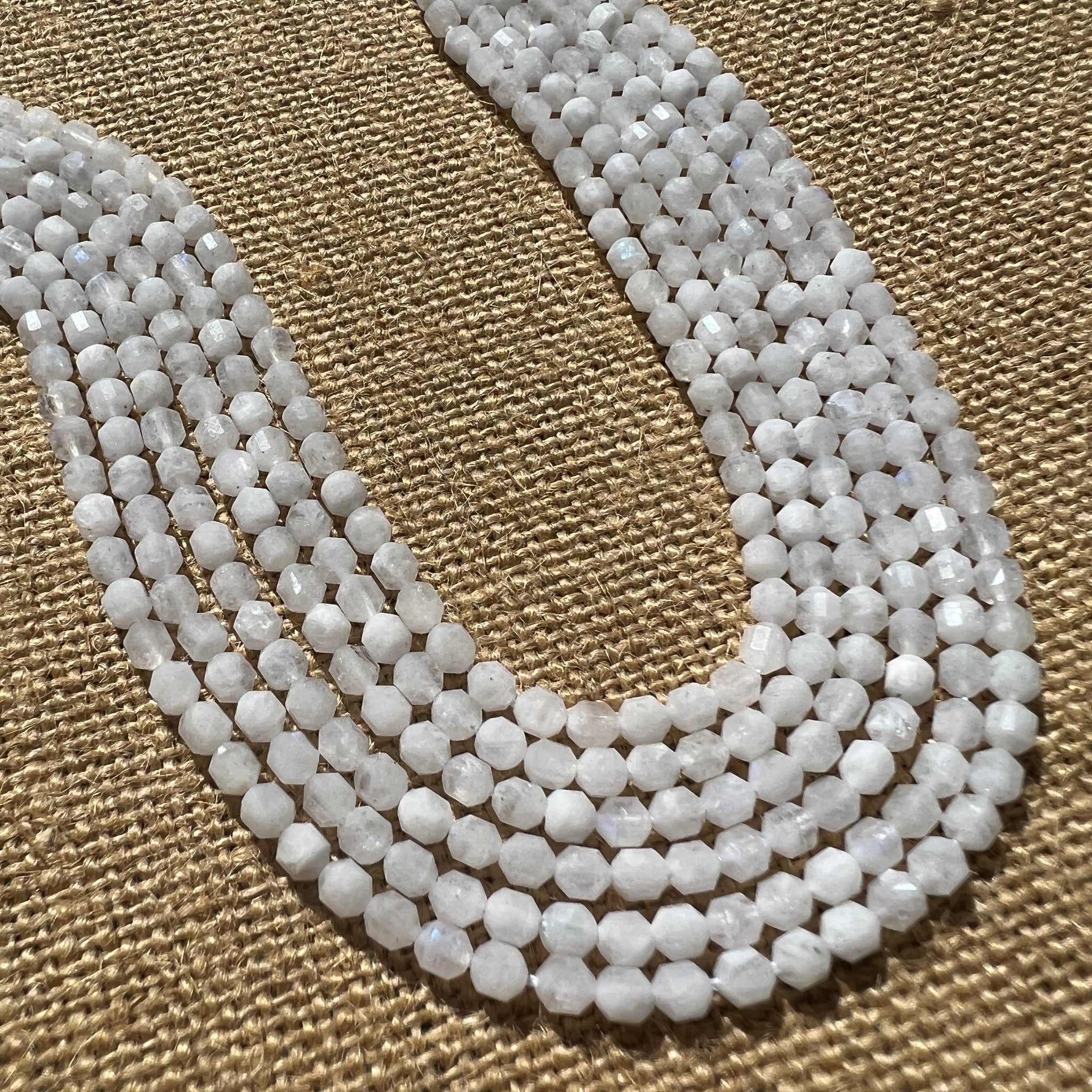 Moonstone faceted, double-terminated shape in sizes 4mm and 8mm.
