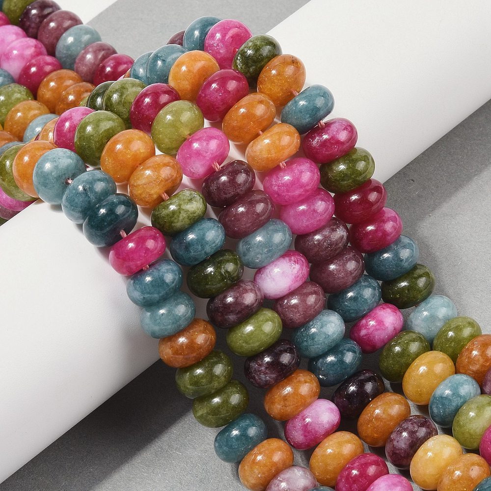 Dyed mixed jewel tones jade smooth rondelle bead strand.