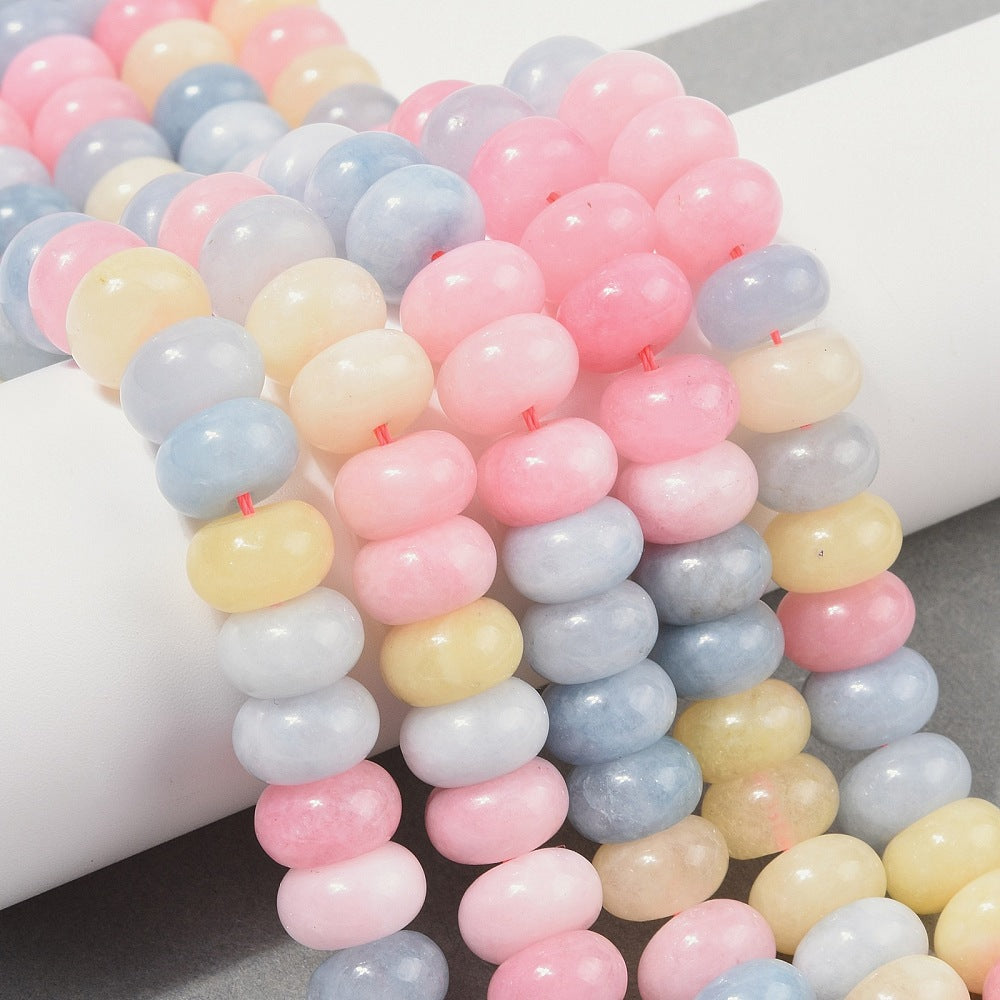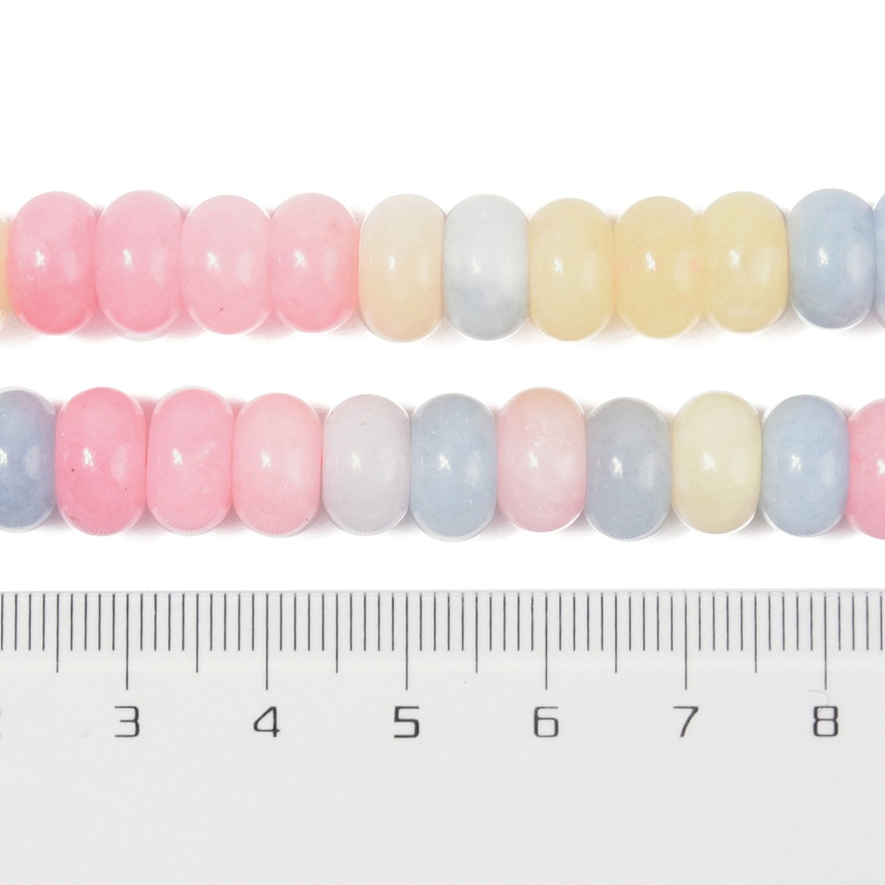Dyed multicolor pastel jade smooth rondelle bead strand.
