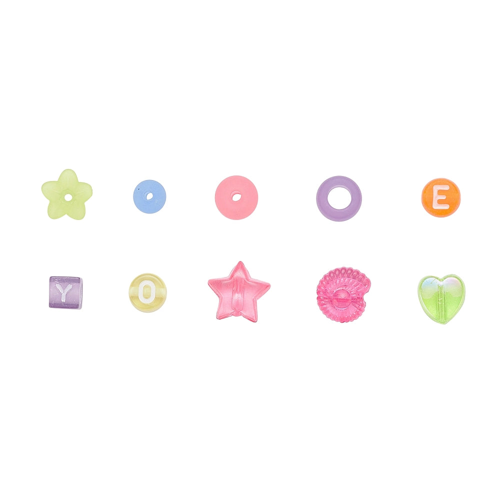 This kit contains ten compartments of acrylic beads in a rainbow of colors, in nine different styles, from simple letter beads to beautiful flowers! This set of beads will add the perfect pop of color to any friendship bracelet, or any project at all!
