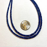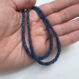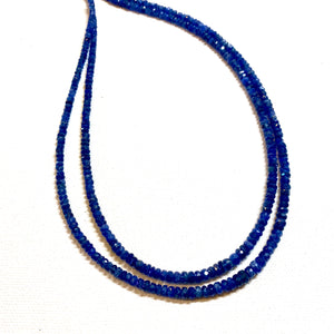 Natural blue sapphires beautifully cut into faceted rondelles. Strands are very slightly graduated