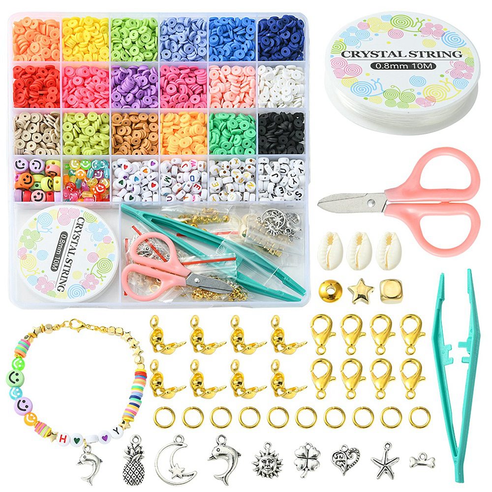 Not only does this kit come with a gorgeous rainbow of spacer beads, letter beads, and smiley face beads, but it also comes with stretchy cord, scissors, clasps, and jump rings to put an excellent finishing touch on your projects!
